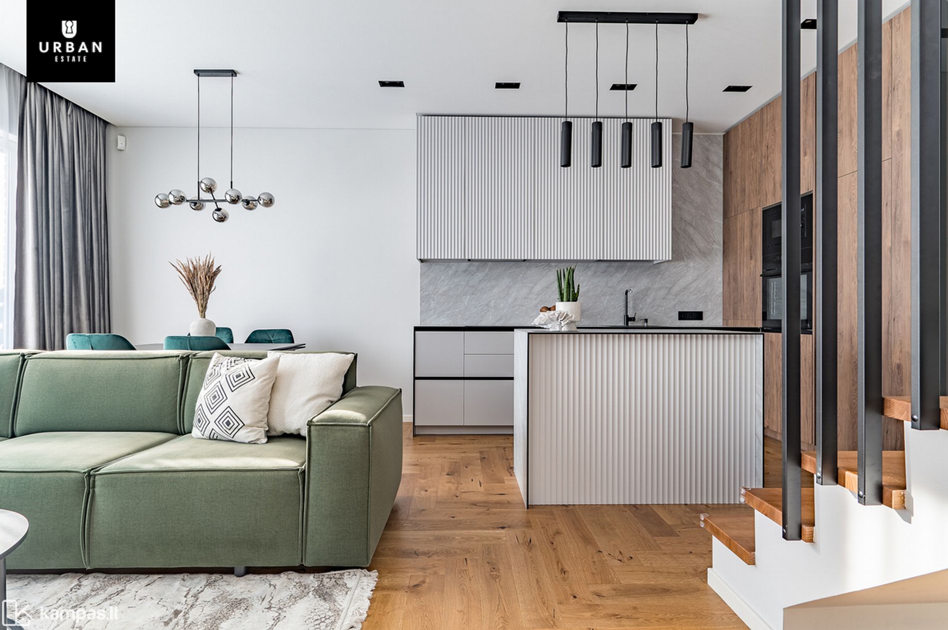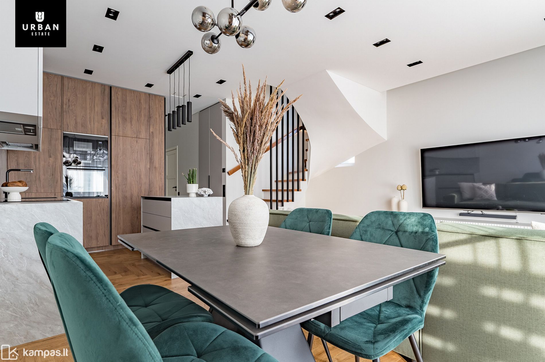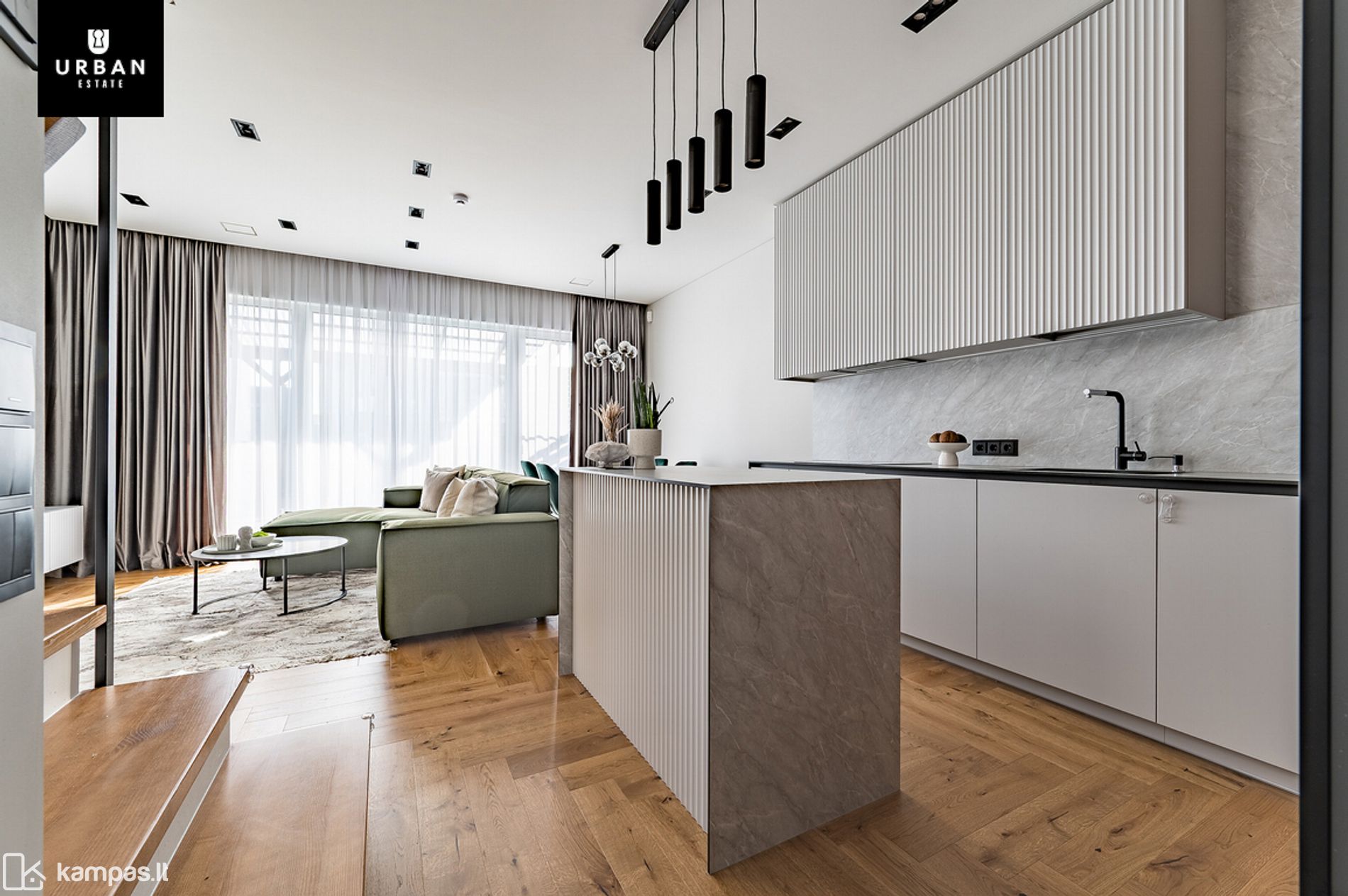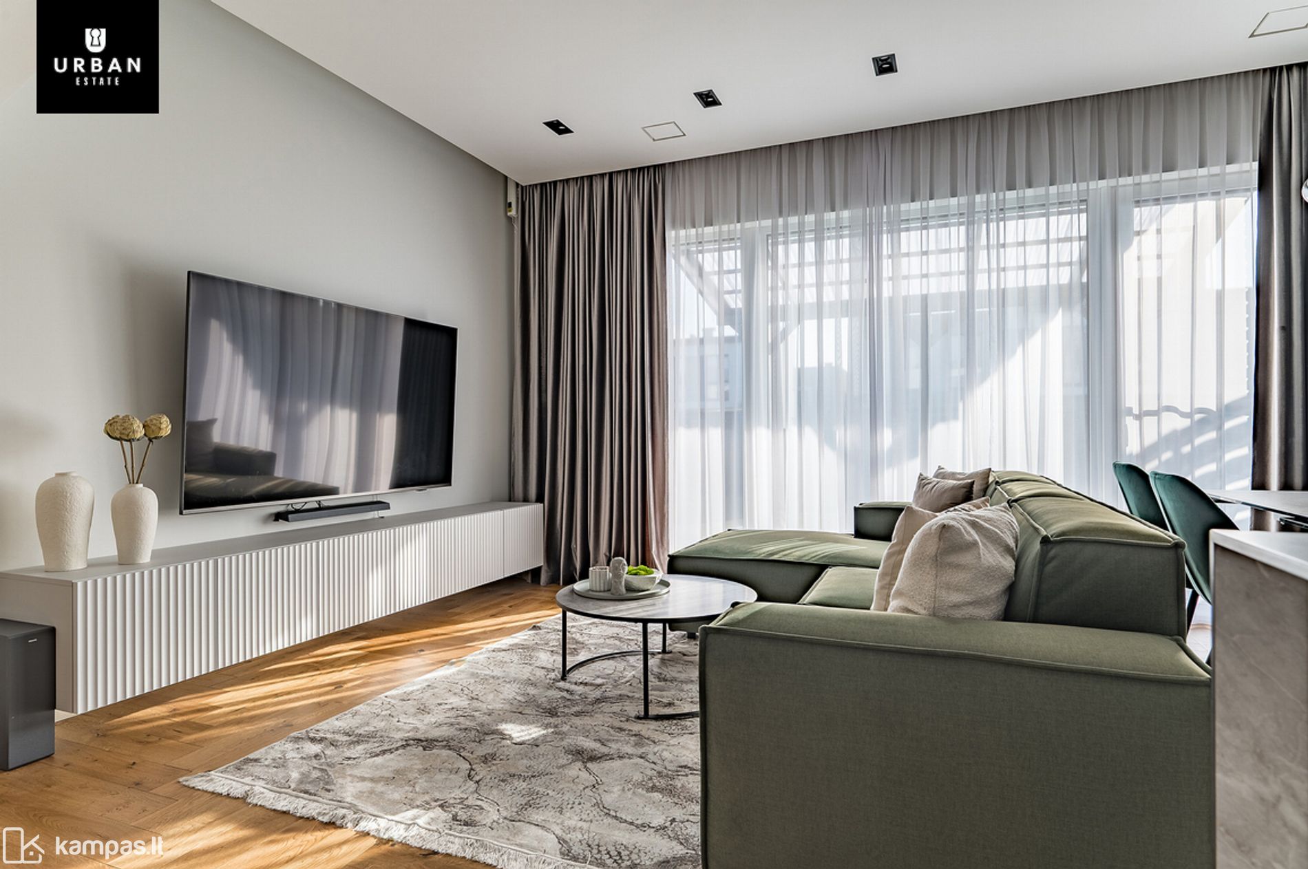 Parduodamas su visais baldais ir itin kokybiška buitine technika (skalbimo mašina su džiovykle "AEG", virtuvėje integruota buitinė technika - kaitlentė ir gartraukis Electrolux (įsijungia automatiškai įjungus kaitlentę), indaplovė AEG, erdvus šaldytuvas ir atskira šaldymo kamera Electrolux, įmontuota mikrobangų krosnelė orkaitė Electrolux , 2 televizoriai Samsung, Phillips ir garso sistema;