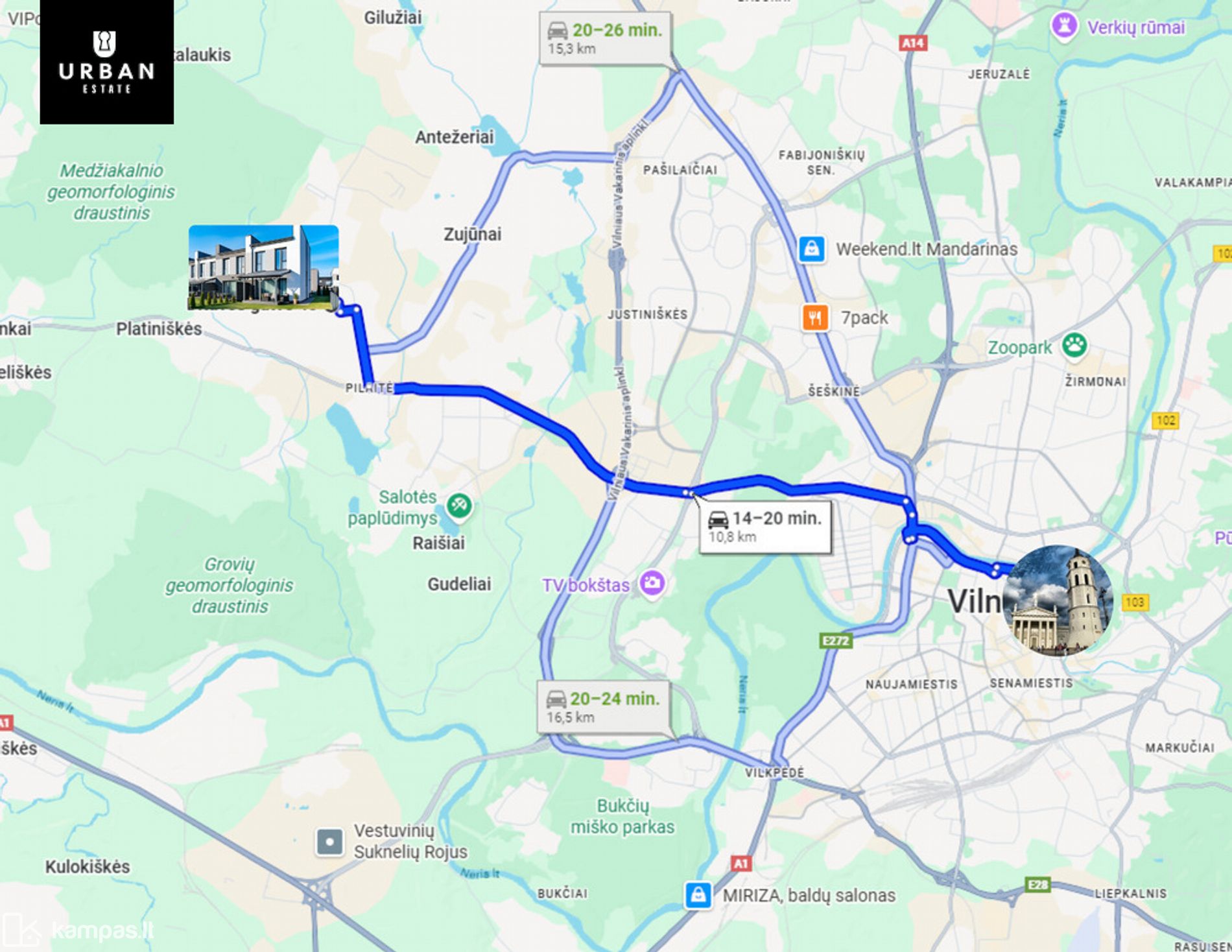 - Miesto centrą pasieksite greitai ir patogiai vos per 20 minučių, o kelių kilometrų spinduliu rasite visus reikalingus objektus: mokyklas, prekybos centrus, viešojo transporto stoteles.