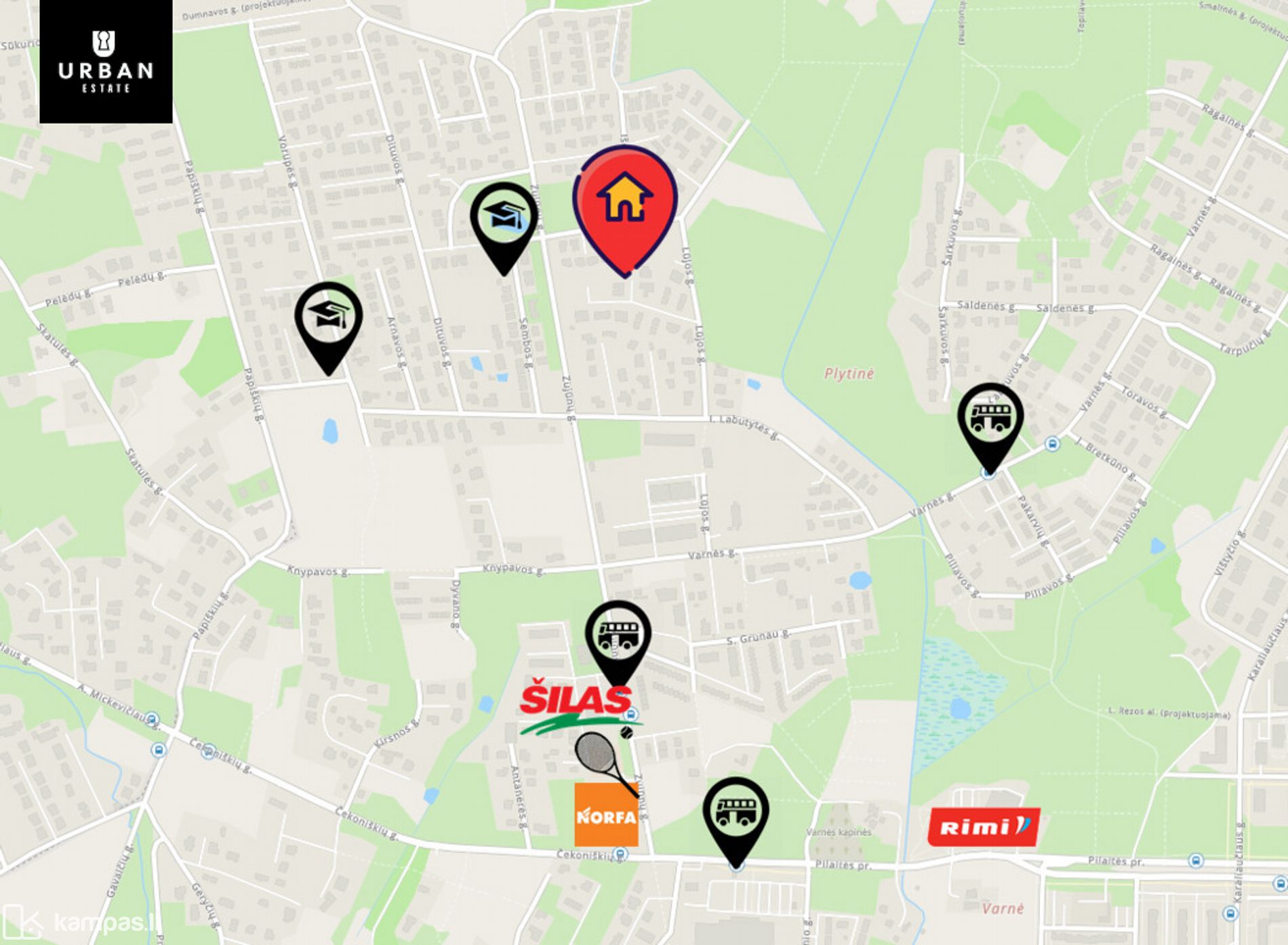 - Nors įsikursite ramioje aplinkoje, tačiau akimirksniu pasieksite visus reikalingiausius objektus vos per keleta minučių: netoliese įsikūrusios mokymo įstaigos, prekybos tinklai, viešojo transporto stotelė.