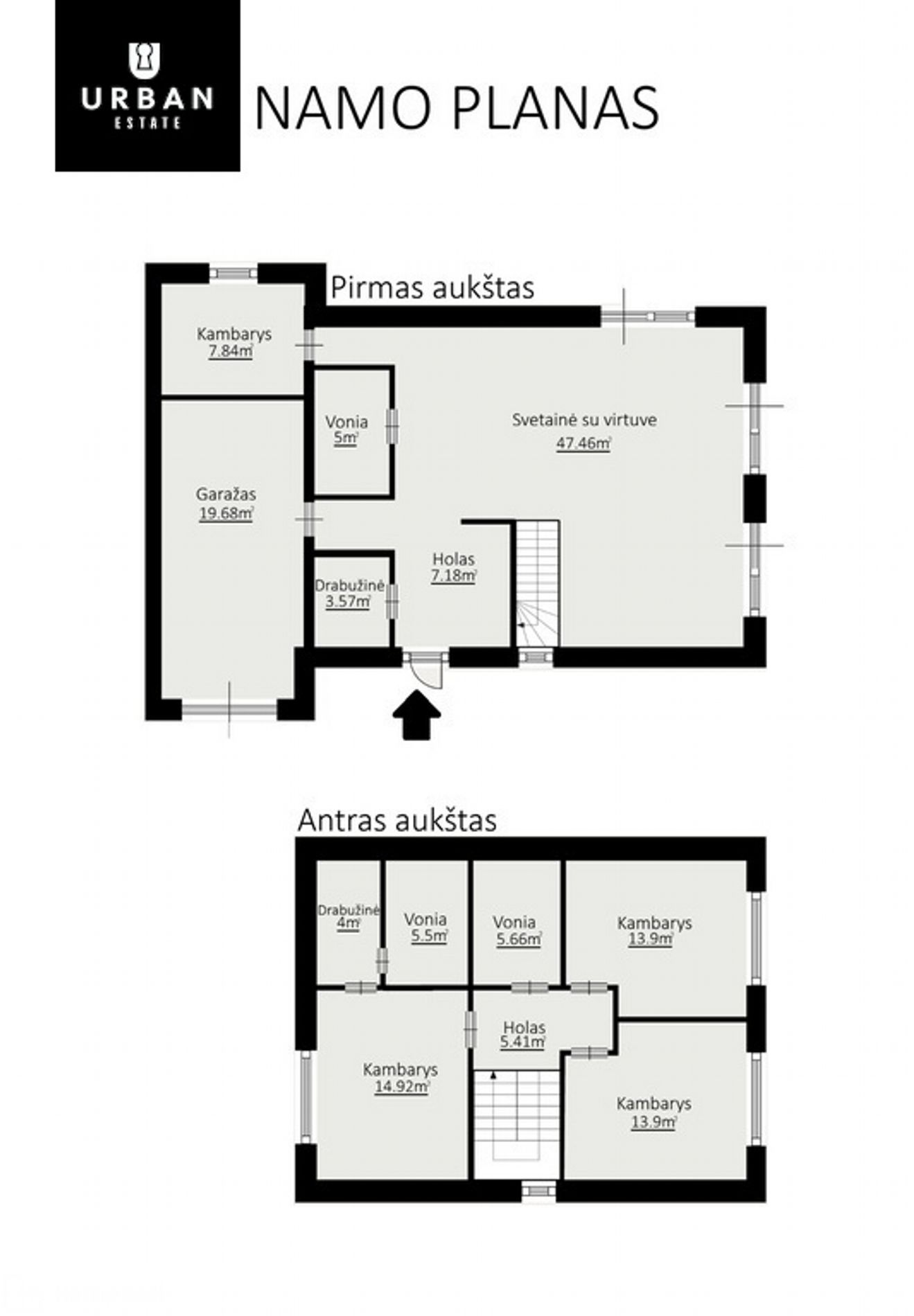 - Kruopščiai apgalvotas išplanavimas - daug vietos erdvioms sieninėms spintoms, numatytos drabužinės, pagalbinės patalpos, garažas.