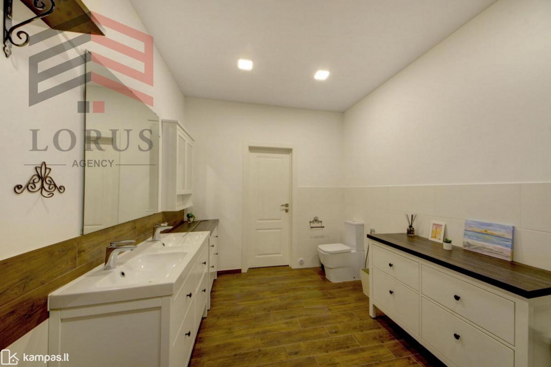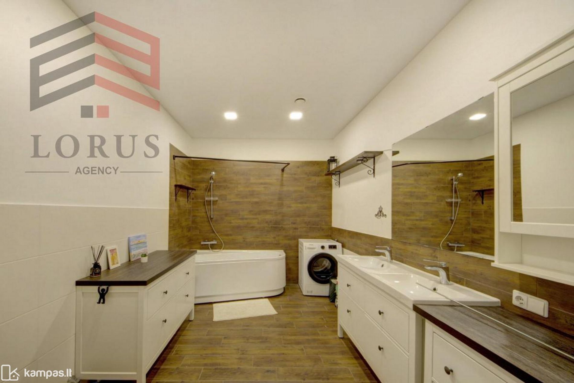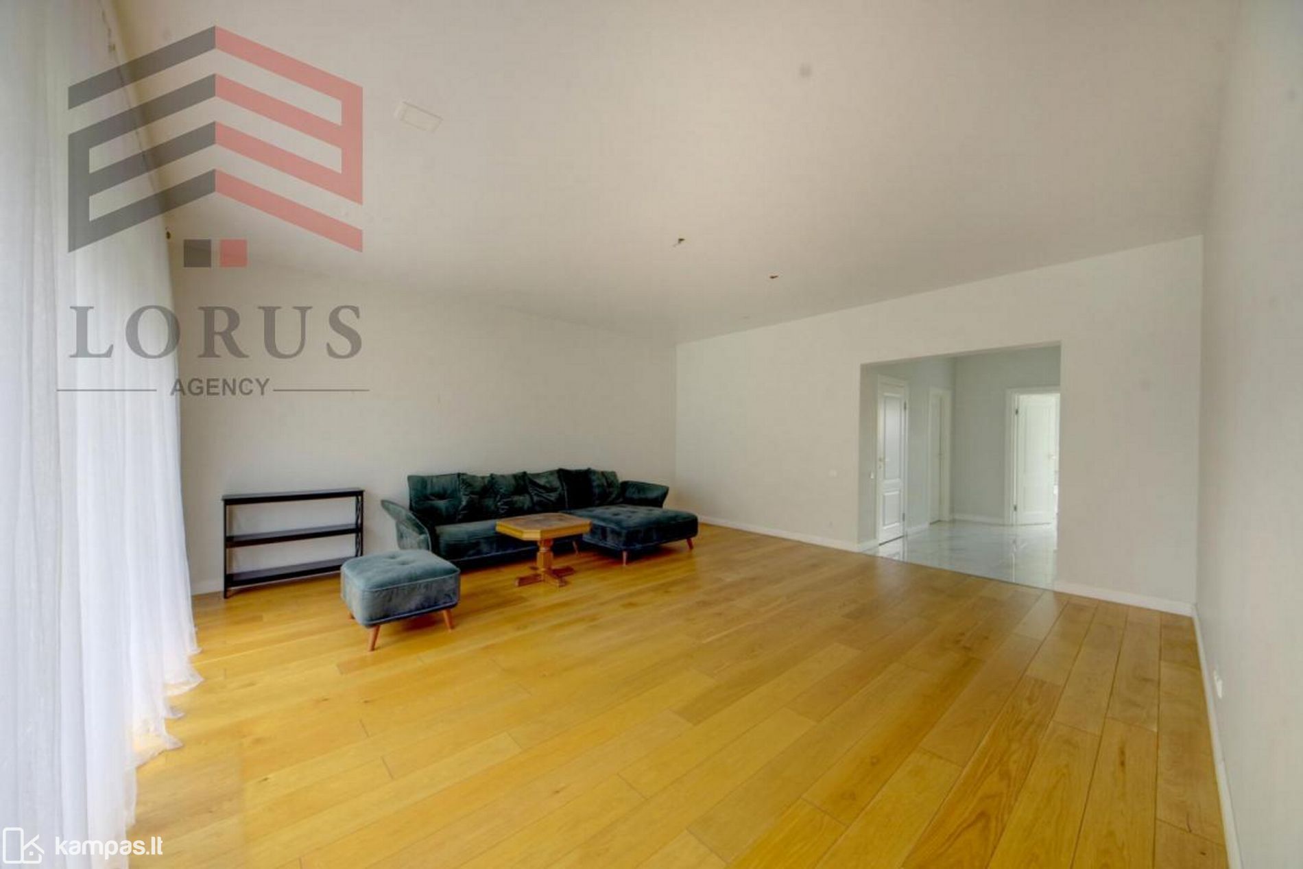 Pirmame aukšte – didžiulė svetainė (40 kv. m) su panoraminiais langais ir išėjimu į terasą su vaizdu į ežerą, atskira virtuvė su visa buitine technika, du vonios kambariai (su skalbykle ir džiovykle).