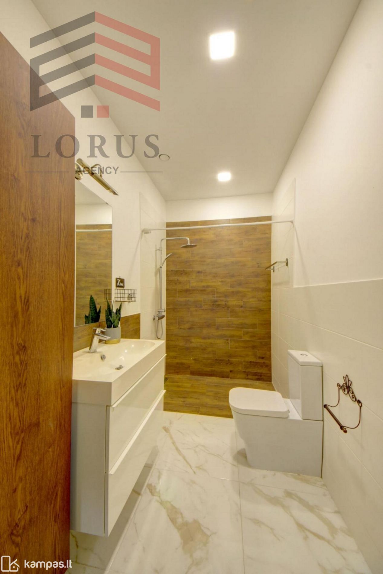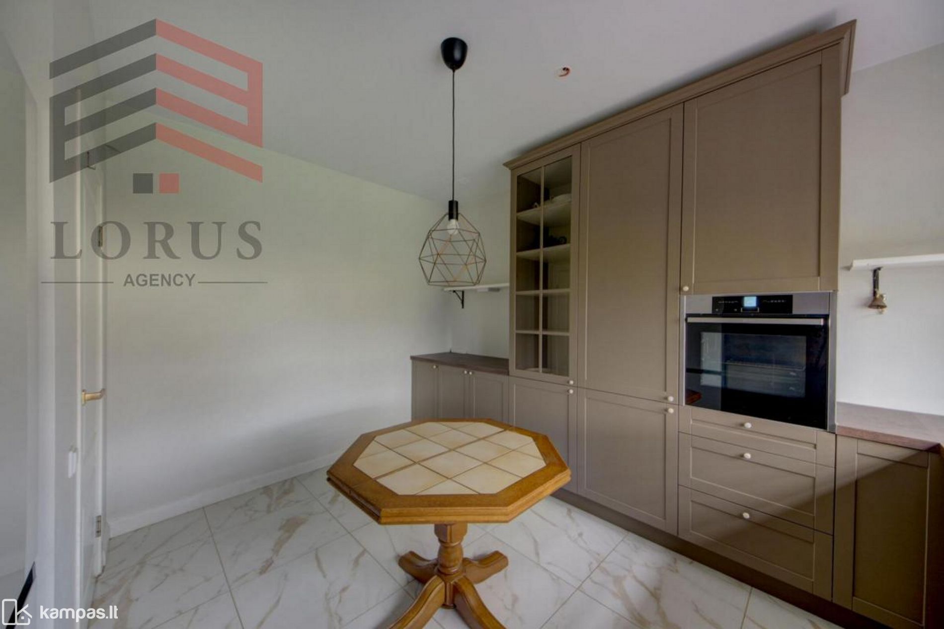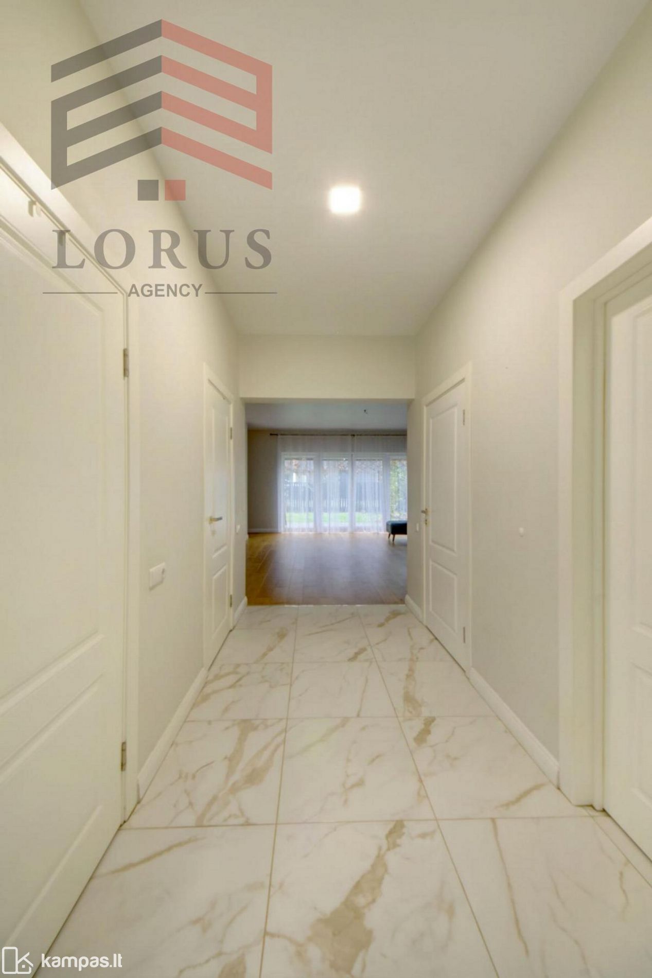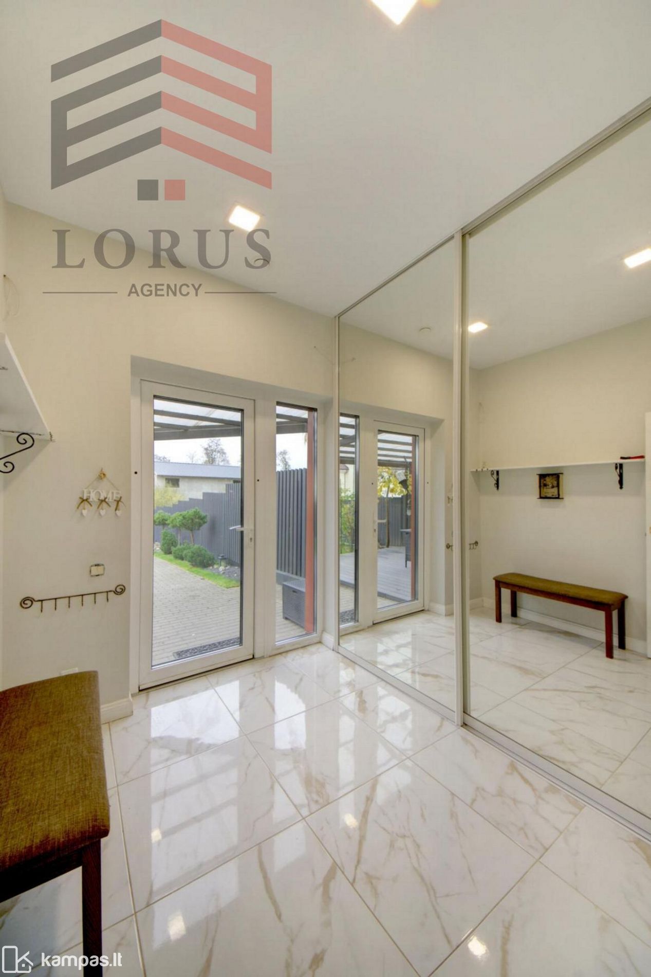 Pirmame aukšte – didžiulė svetainė (40 kv. m) su panoraminiais langais ir išėjimu į terasą su vaizdu į ežerą, atskira virtuvė su visa buitine technika, du vonios kambariai (su skalbykle ir džiovykle).