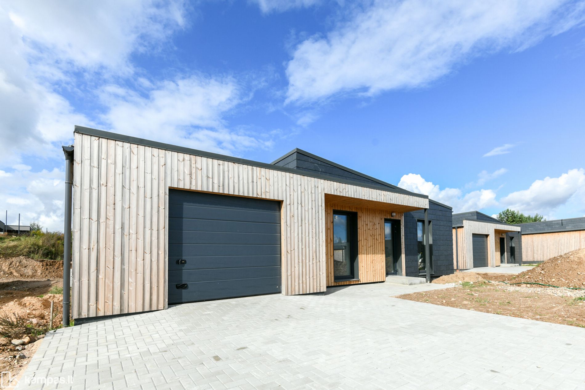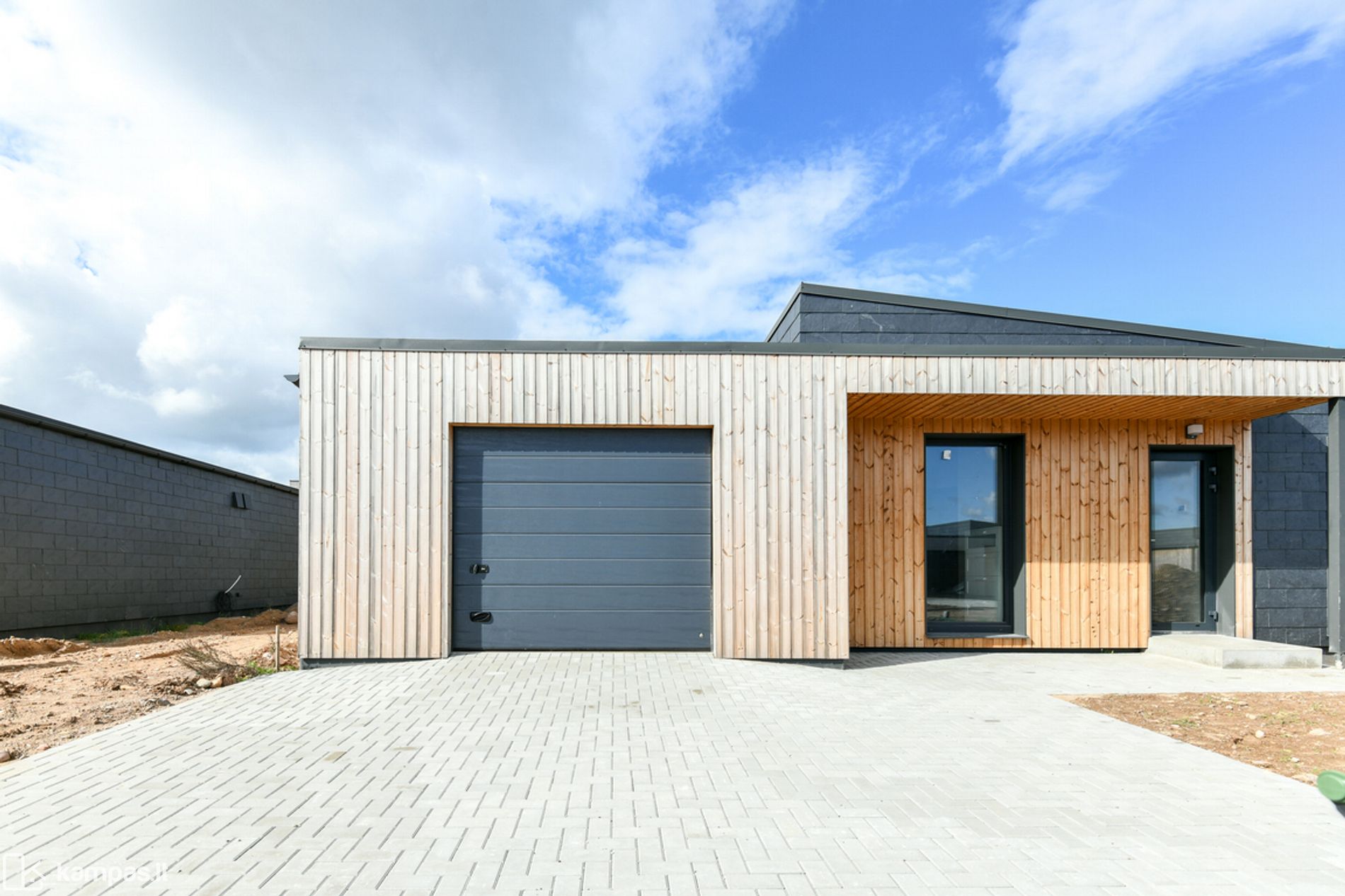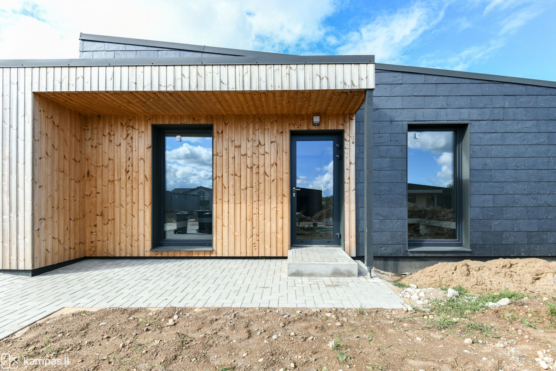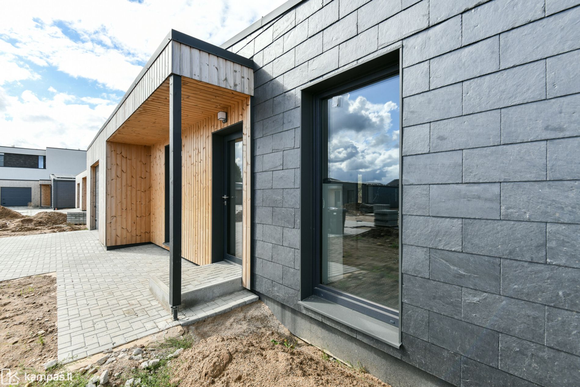 • Fasado apdaila - skalūnas ir termo mediena;