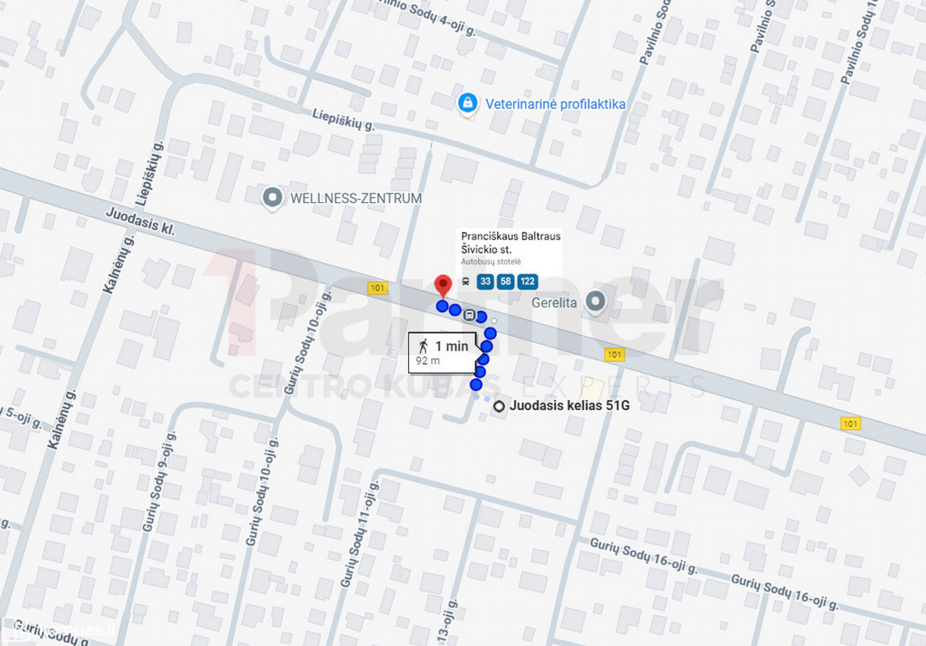 • Artimiausia autobusų stotelė – 90 m;