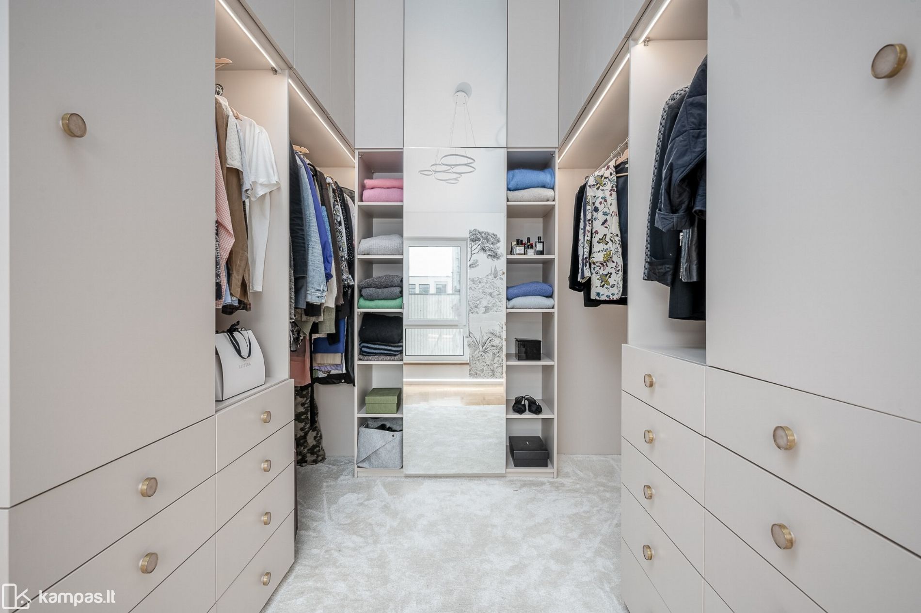 • Įrengta įeinama („walk-in“ tipo) erdvi drabužinė, sieninė spinta, numatytos dar kelios vietos sieninėms spintoms.