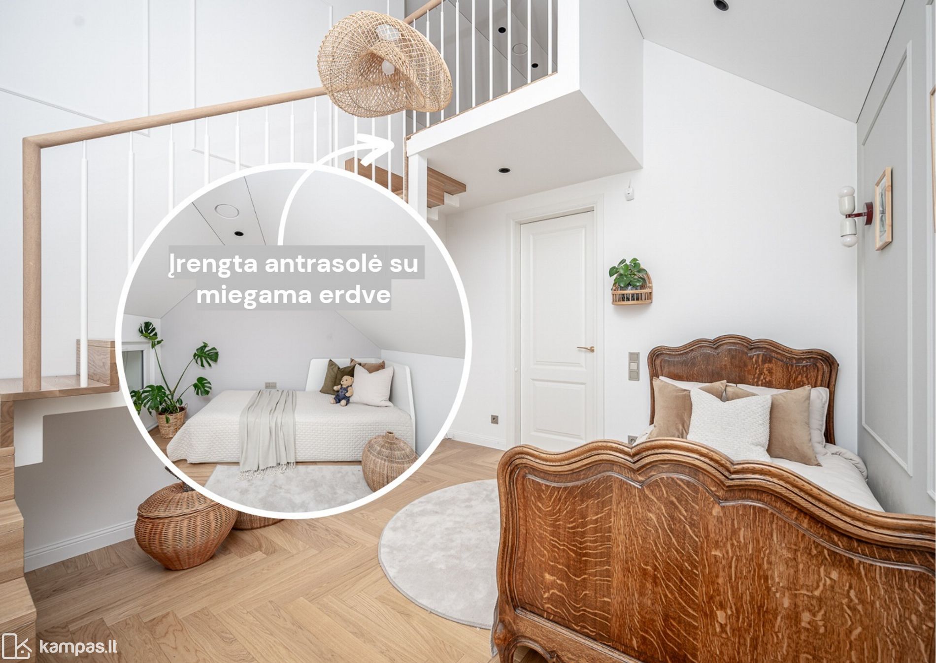 • Miegamųjų kambarių sk.: 3 miegamieji kambariai + 1 darbo kambarys