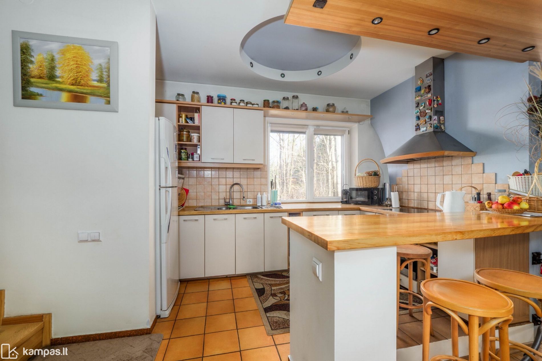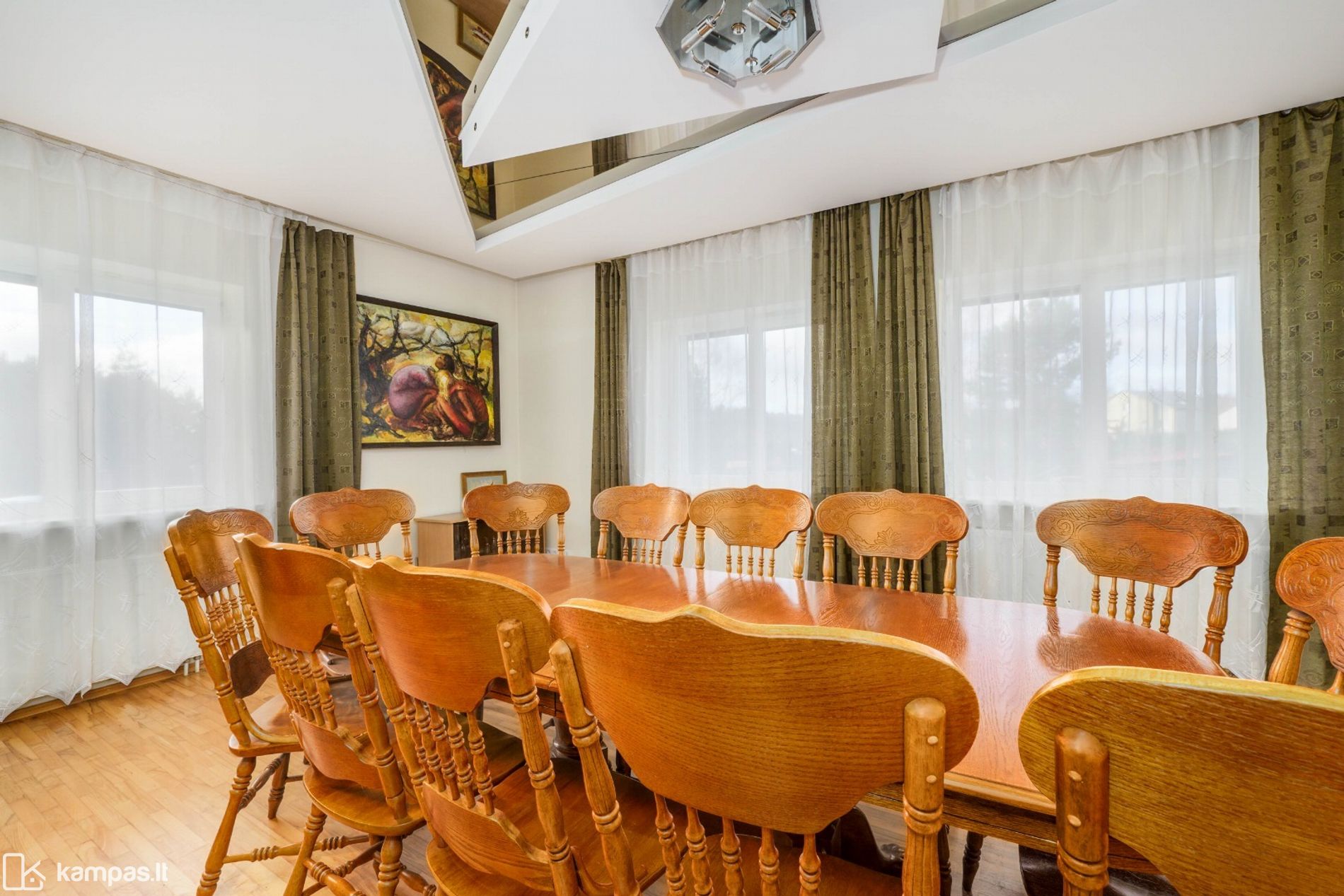 265,79 kv. m namas – puikus pasirinkimas tiems, kurie ieško privatumo, tylos ir gamtos, tačiau nenori atsisakyti patogaus susisiekimo su miesto centru. Patogus namo išplanavimas ir erdvūs kambariai pritaikyti komfortiškam šeimos gyvenimui. Kieme įrengta pavėsinė maloniems vasaros vakarams gryname ore.