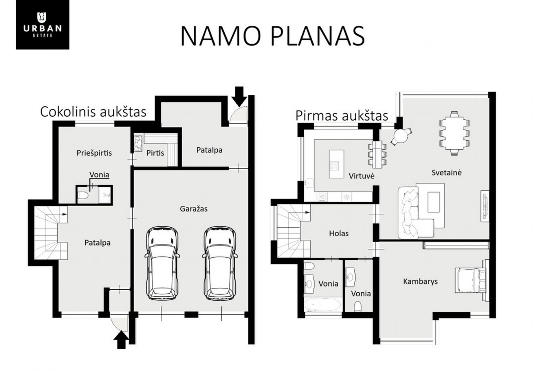 • Bendras plotas - 417,30 kv.m., kurių naudingas plotas - 275,59 kv.m., gyvenamas plotas - 206,54 kv.m., rūsio plotas - 82,41 kv.m., garažo plotas - 59,30 kv.m.; Yra sauna su elektrine krosnele.