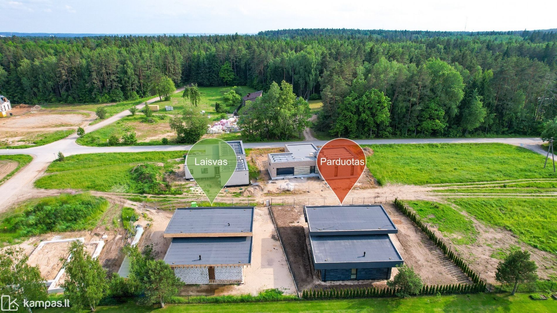 Parduodamas išskirtinio dizaino, vieno aukšto, 161 kv. m ploto namas Vilniuje, pastatytas pagal unikalaus architekto projektą. A++ klasės būstas išsiskiria 4,3 metro aukščio lubomis, dideliais mediniais vitrininiais langais bei ilgaamžiu degintos medienos ir skalūno fasadu. Namas stovi erdviame, 10 arų individualiame sklype, vos 20 minučių kelio nuo miesto centro.
