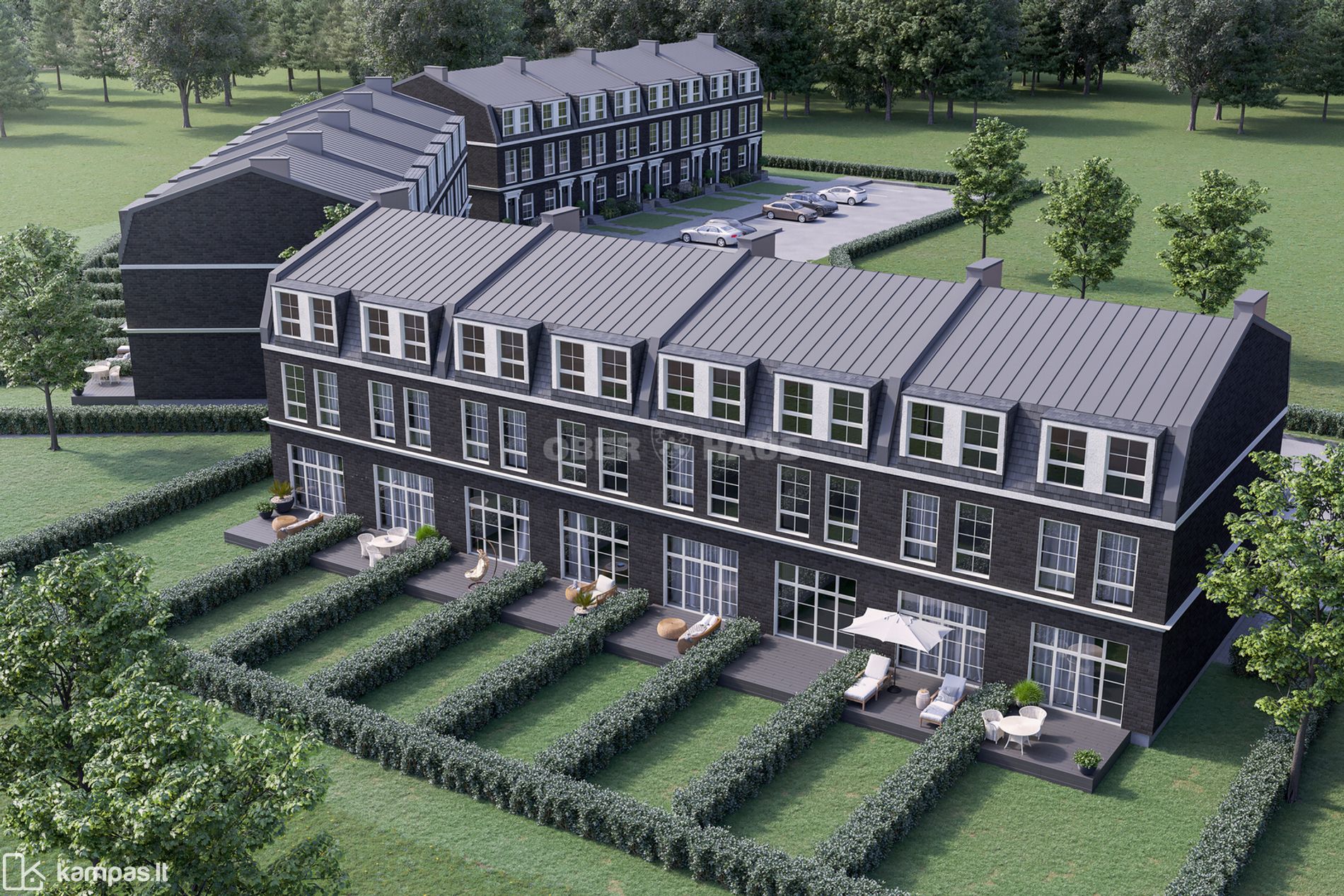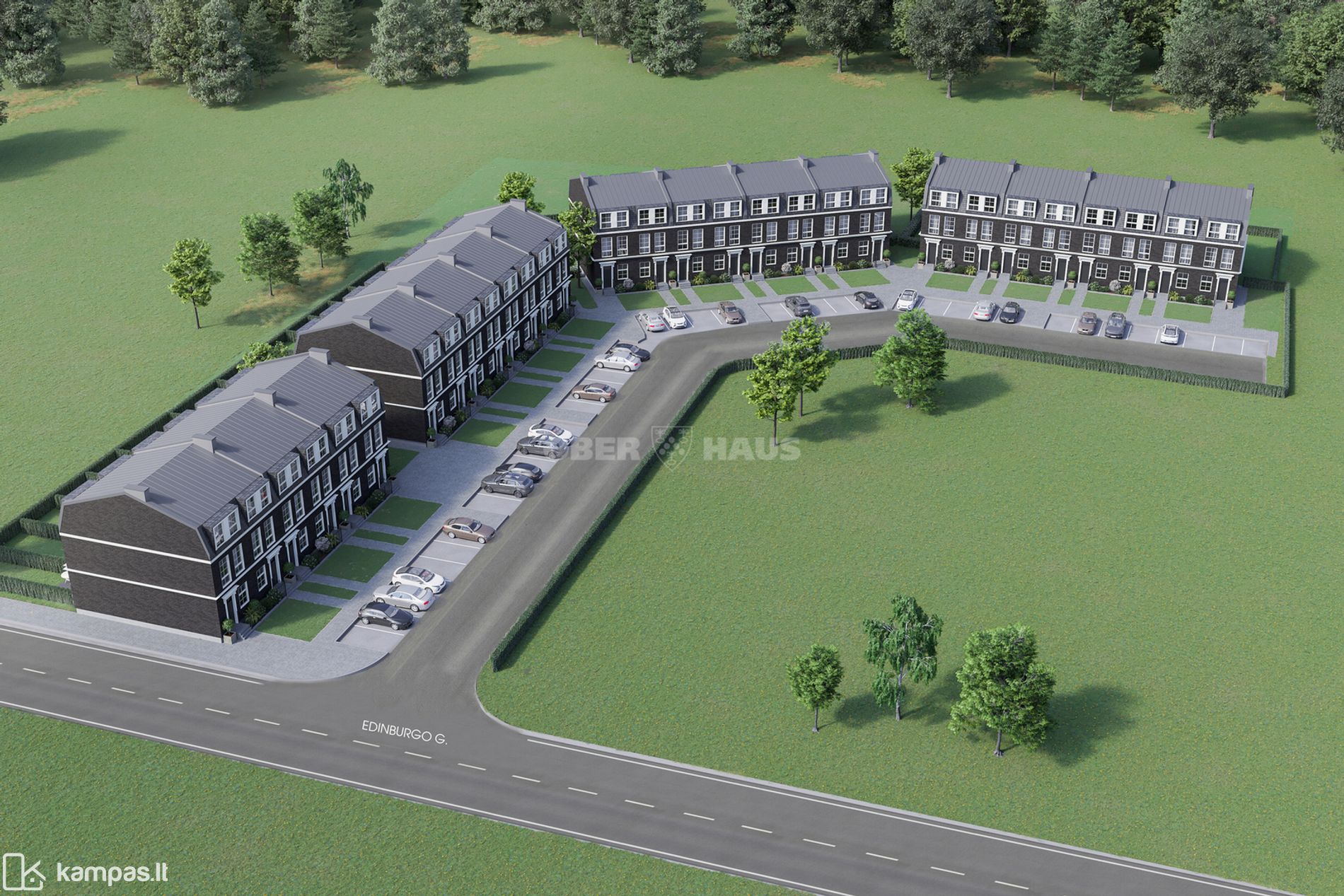 - Uždaras 30 stilingų kotedžų kvartalas, kurį sudaro 4 pastatai.