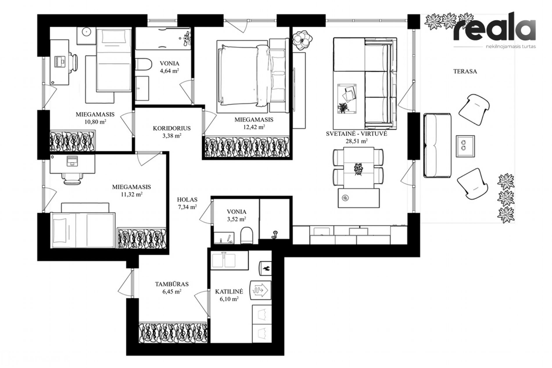 • Bendras plotas: 95 kv.m;