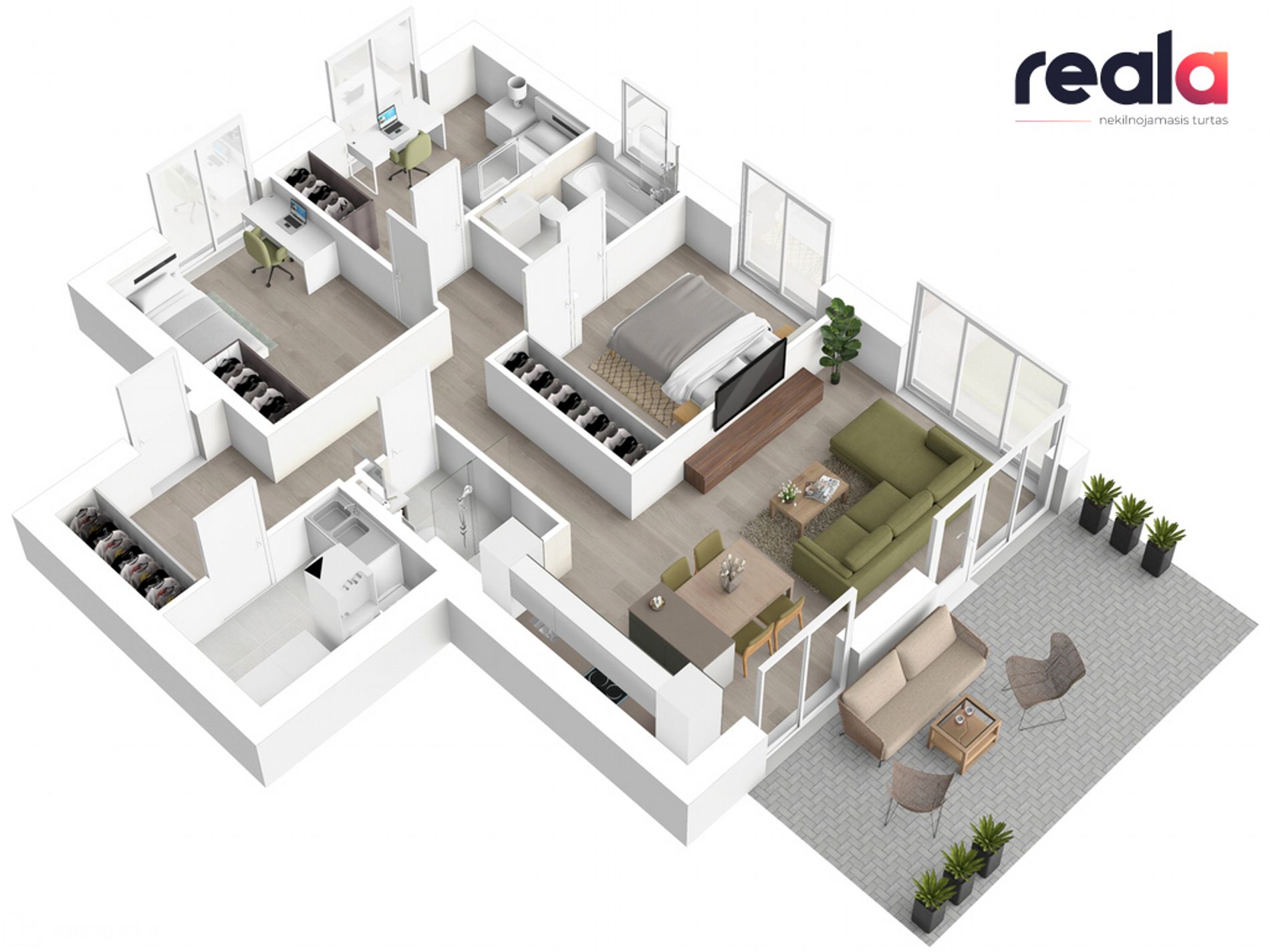 • Erdvi terasa 21 kv.m.;