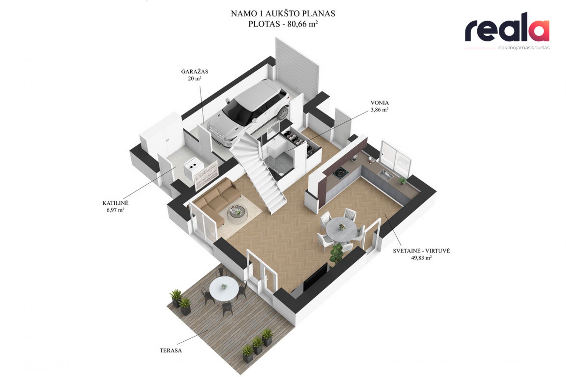 - Namo tipas: mūrinis, sublokuotas per garažą.
