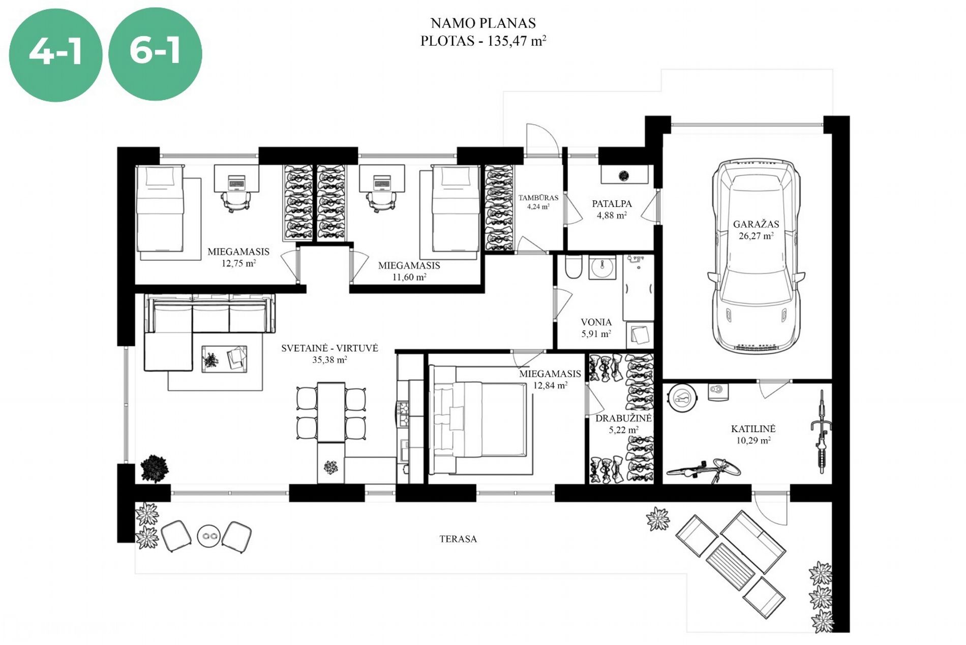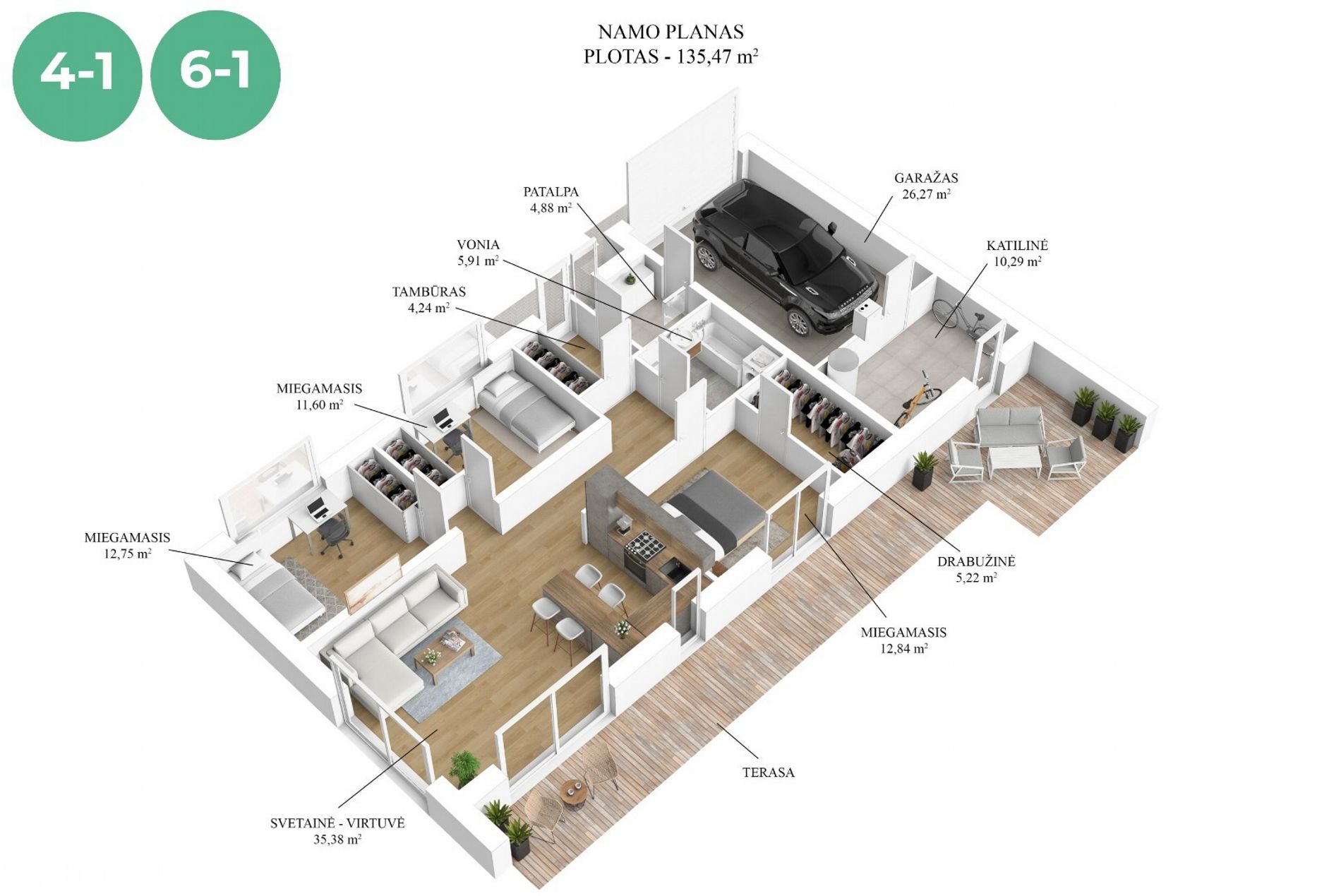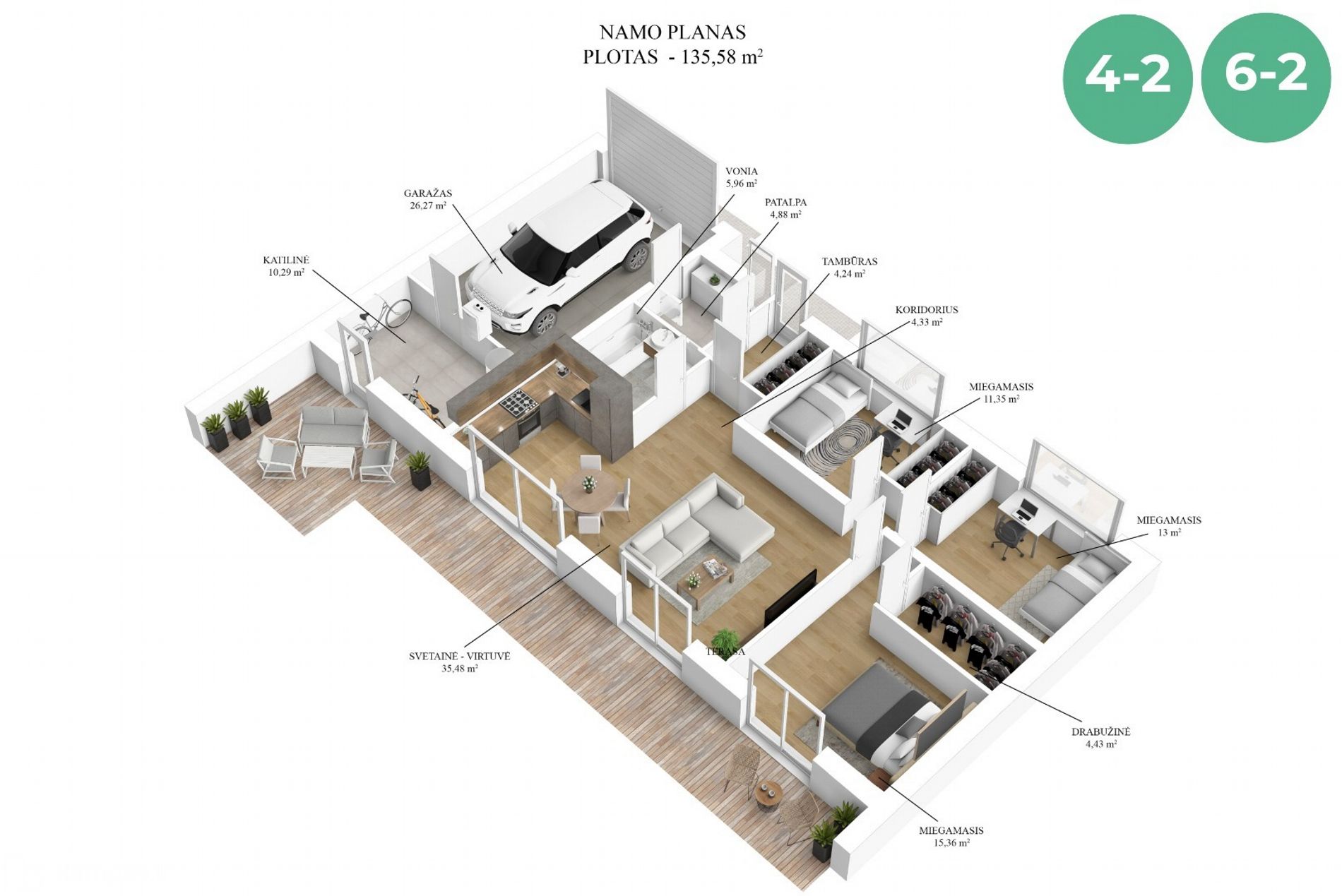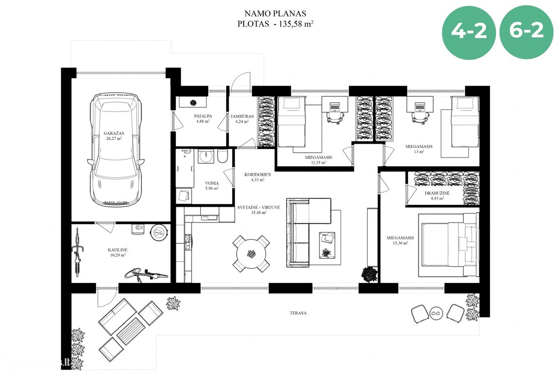 Namo plotas: 136 m2 (iš jų 26 m2 garažas)