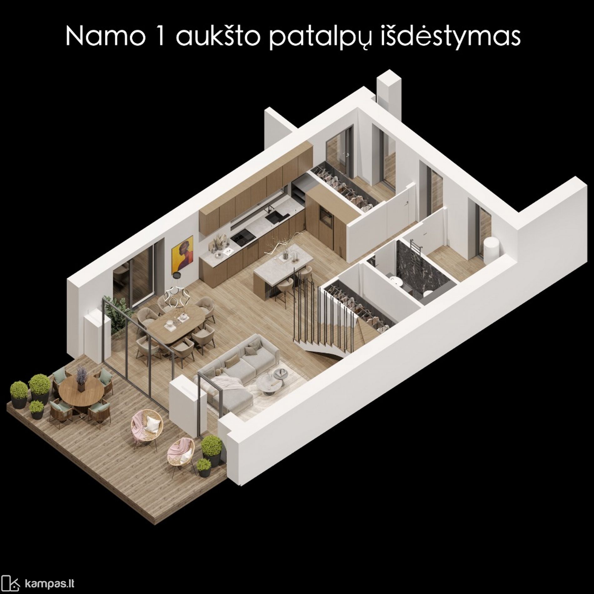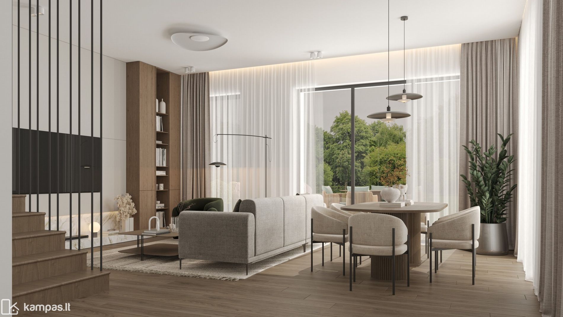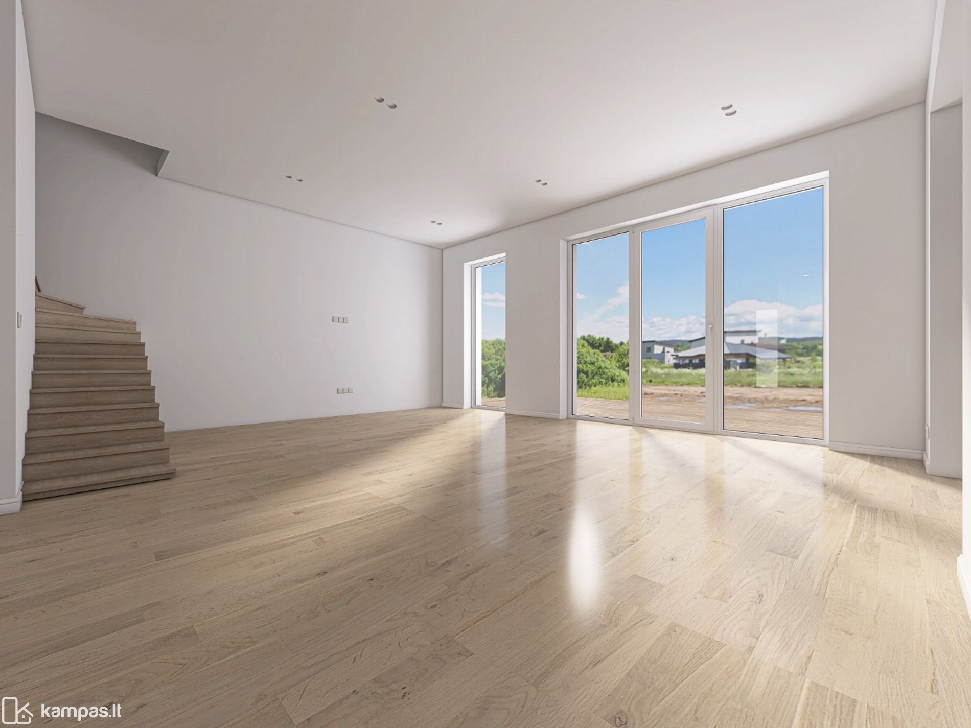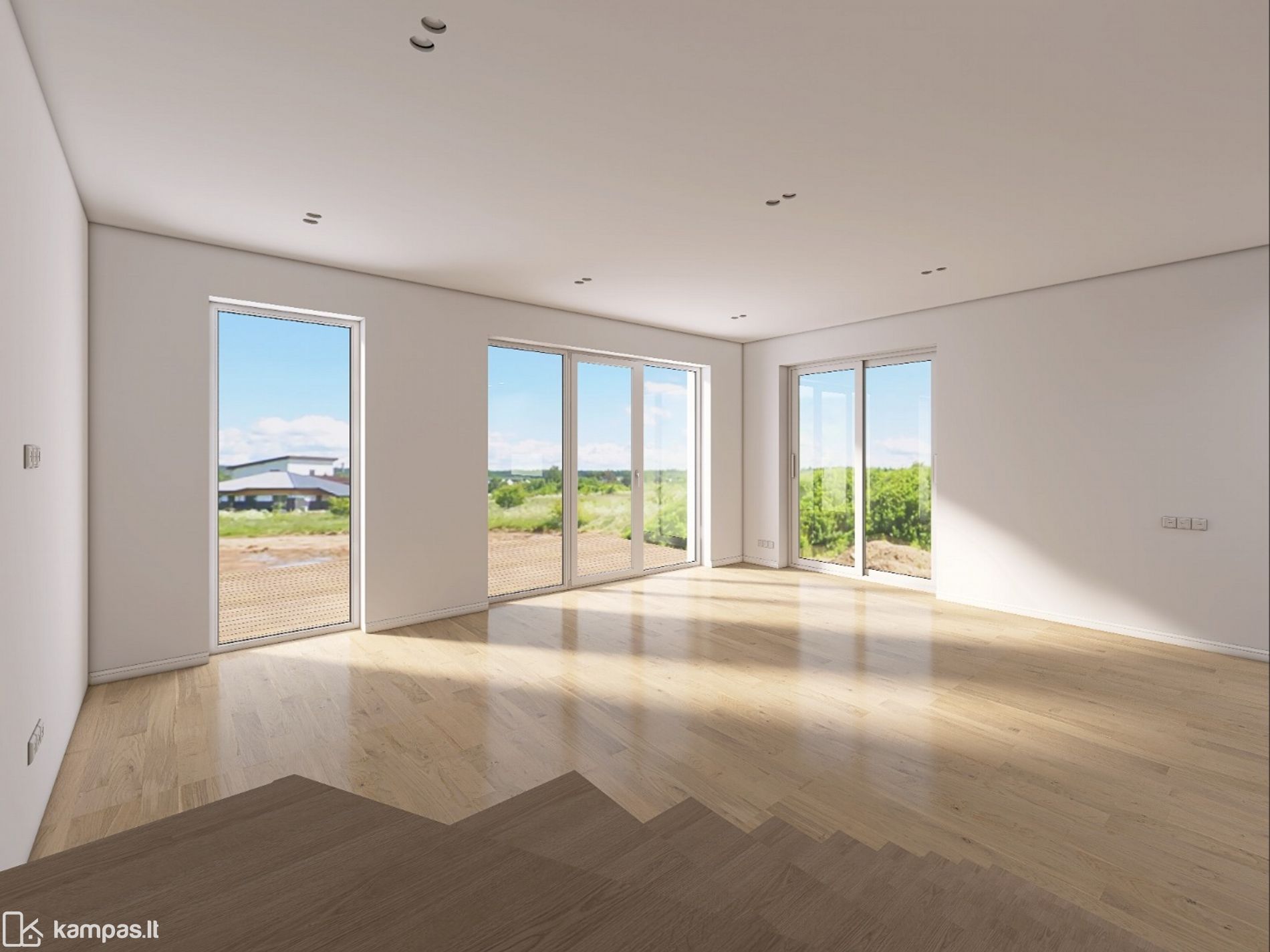 • Kambarių skaičius - 4, virtuvė sujungta su svetainės ir valgomojo zona, 3 miegamieji kambariai.