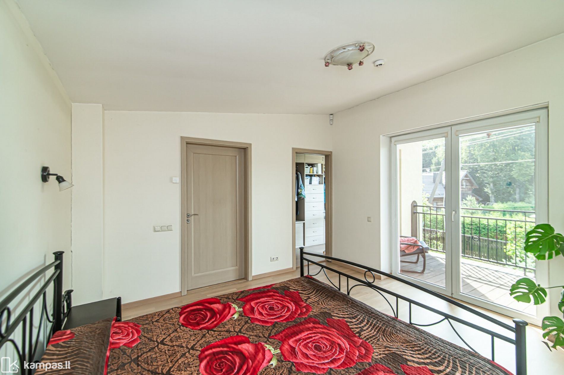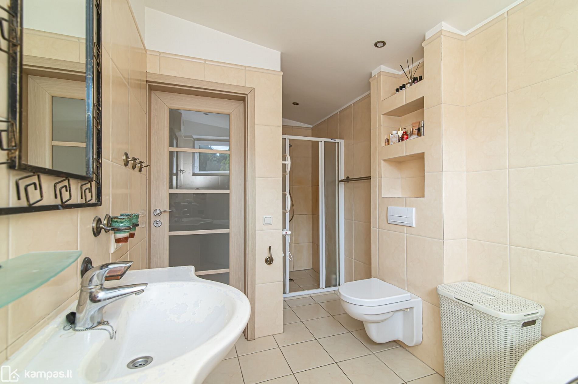 Pirmajame aukšte įrengtas vienas iš trijų miegamųjų (11.45 m2) su drabužine (5.19 m2), o vonios kambaryje galima pasimėgauti pirtelės teikiamais malonumais.