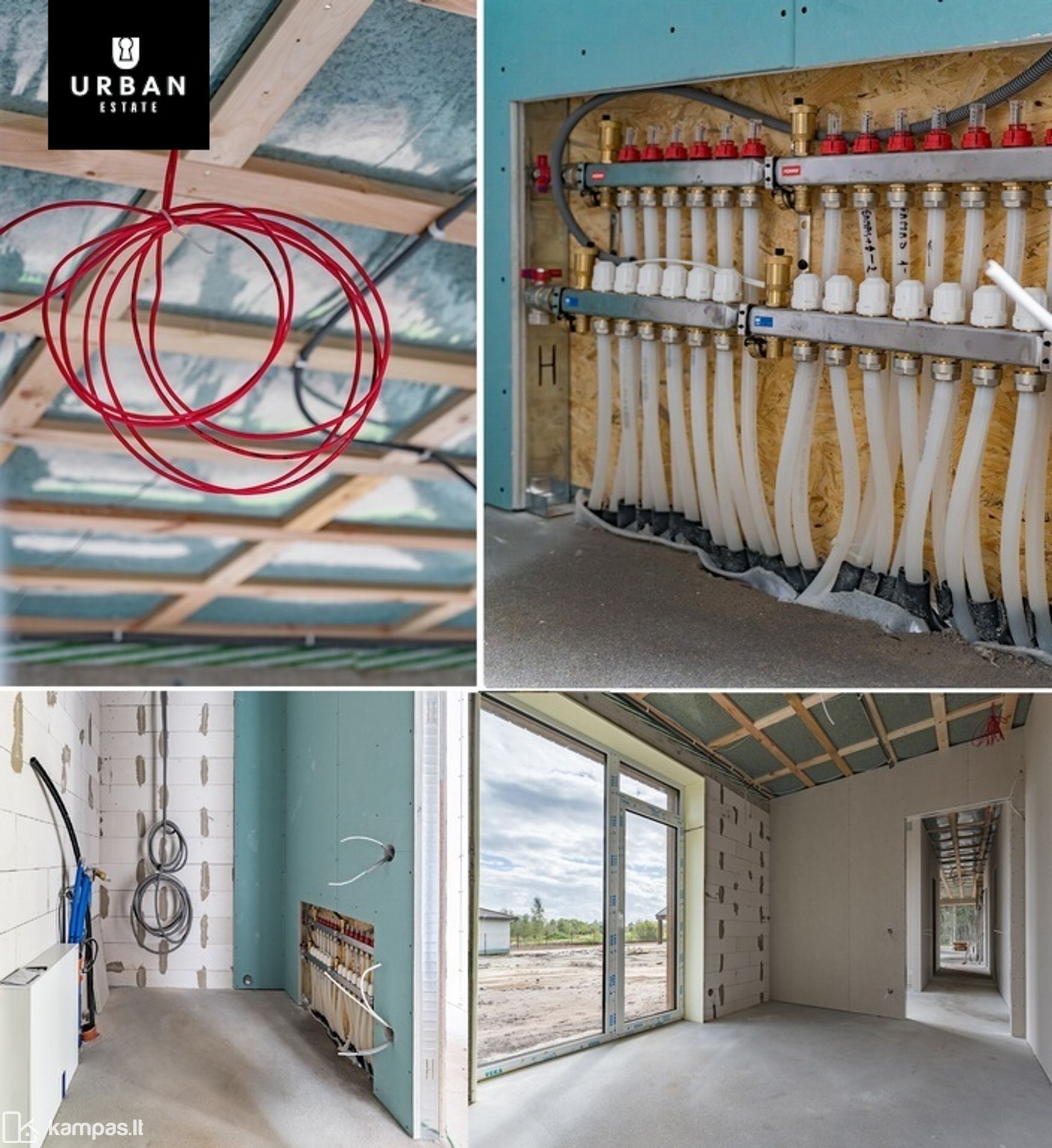 - Šildymo sistemos su temperatūros reguliavimu: montuojama grindinio šildymo sistema, kolektorių įrengimas bei sujungimas atlikti. Katilas nemontuojamas (galima už papildomą kainą).