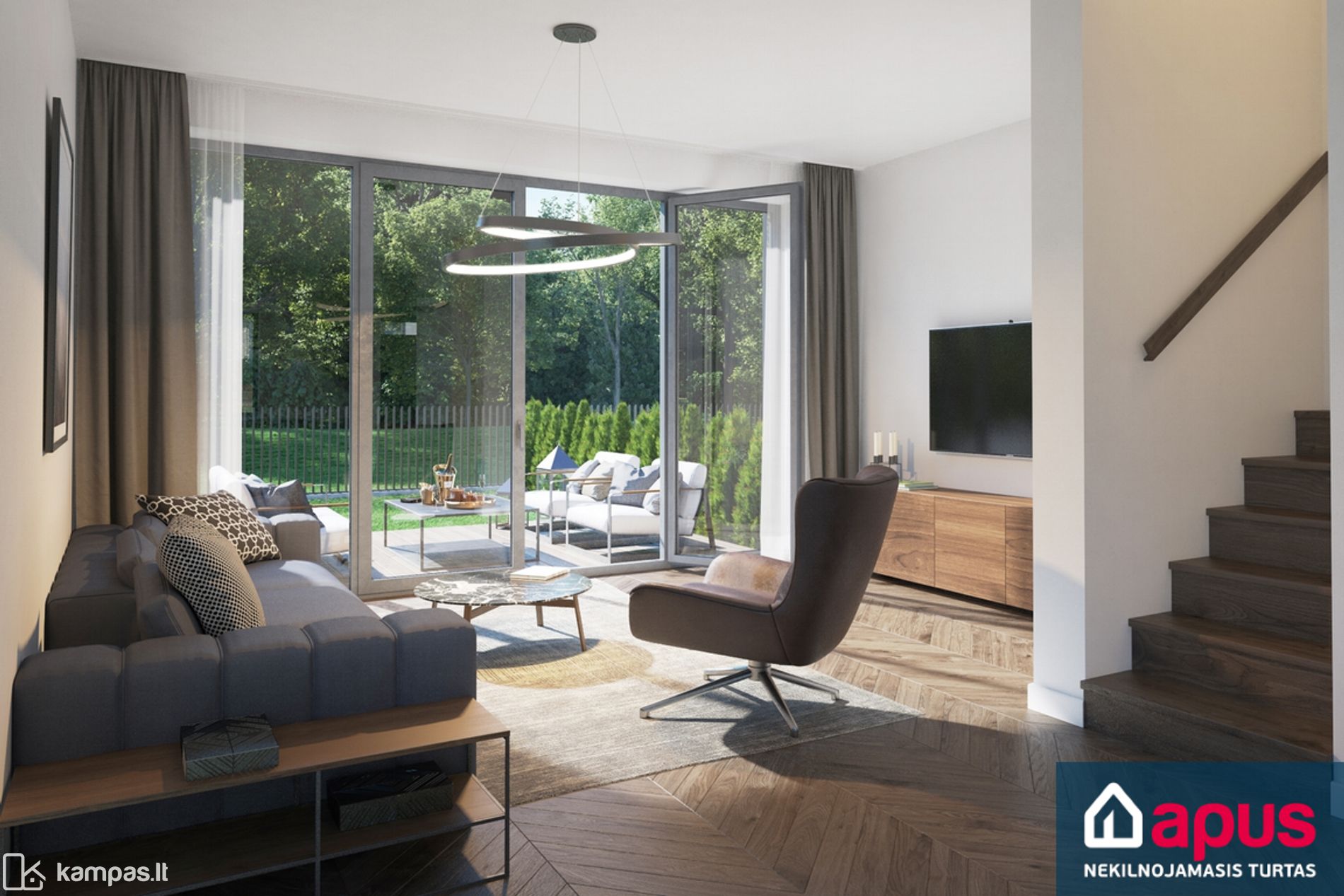 • 15 kv. m medžio kompozito lentų terasa rytų, pietų arba vakarų kryptimi.