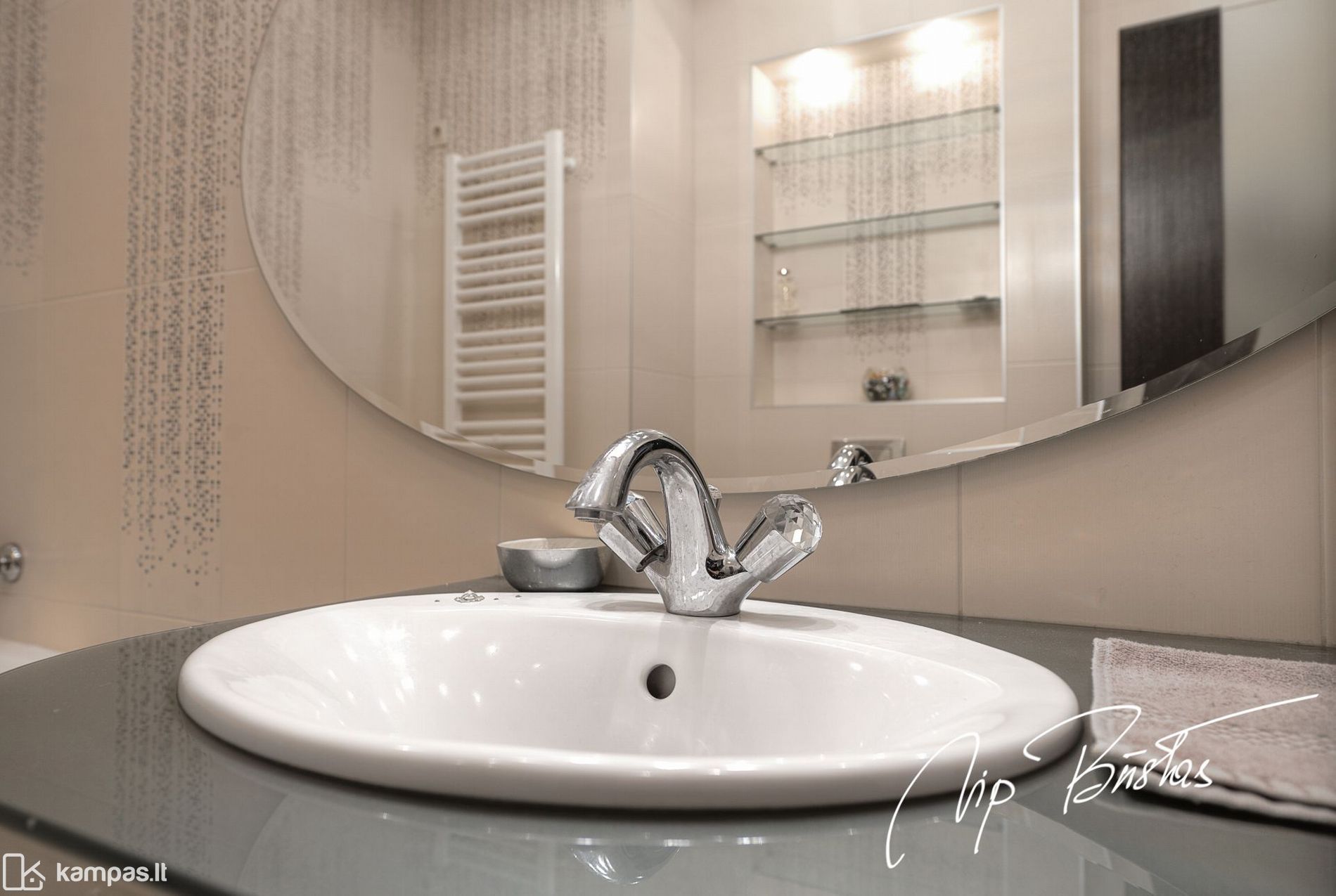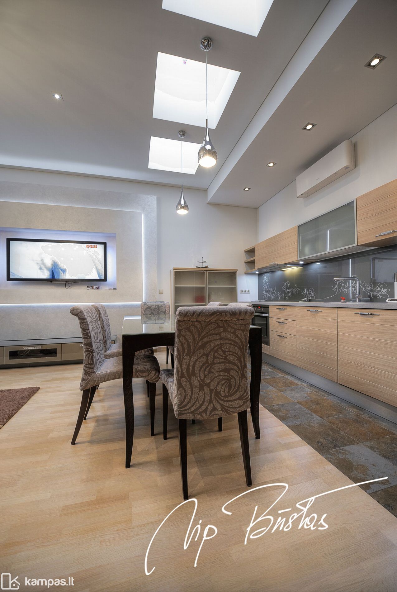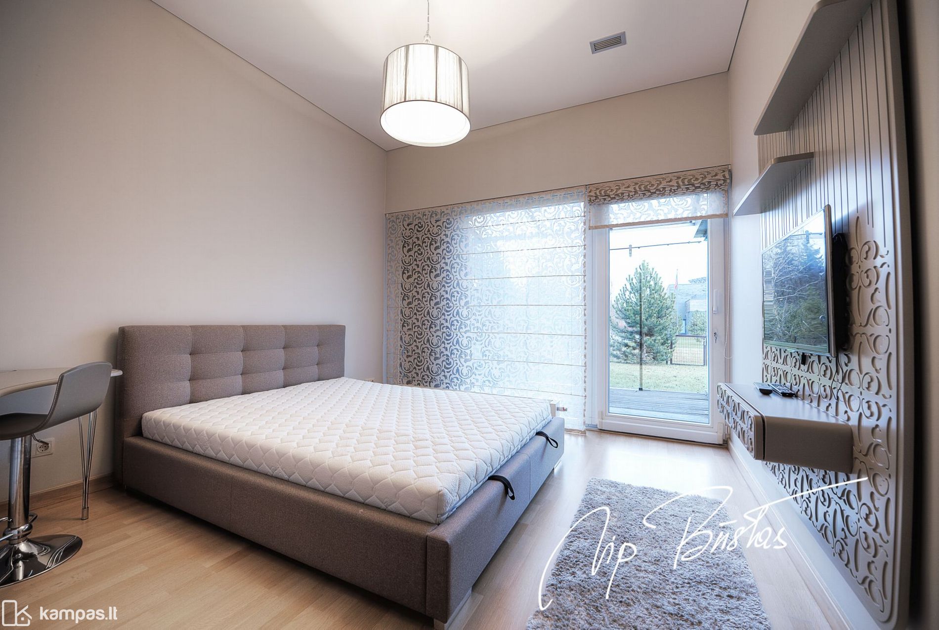 * Trys miegamieji, svetainė su virtuve ir valgomuoju, du vonios kambariai, dvi terasos (viena vidinė, kita išorinė su vaizdu į prūdą), garažas.