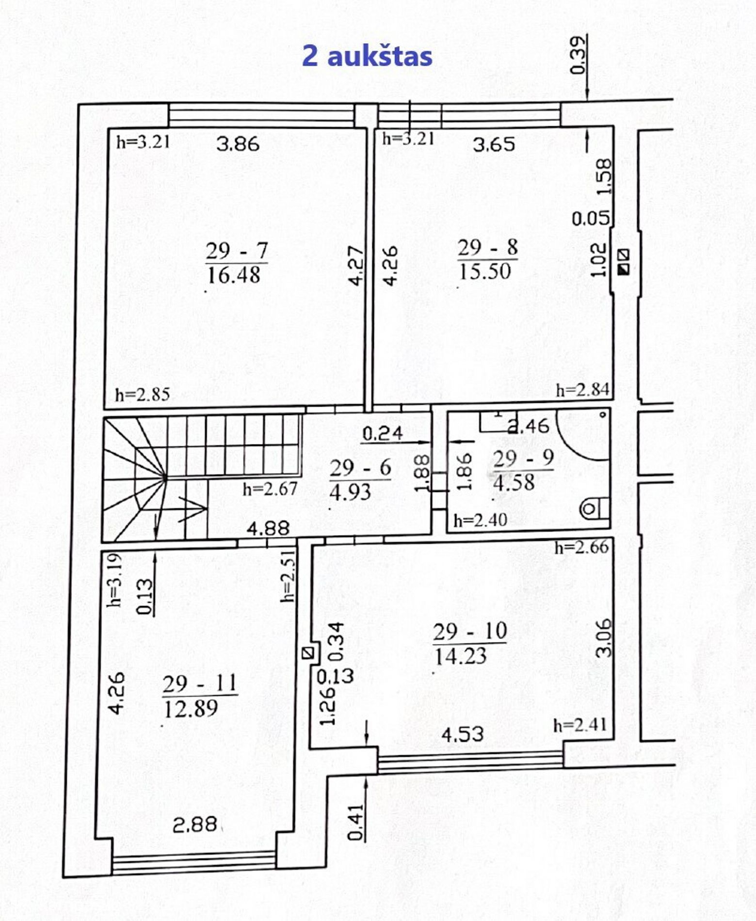 Patalpos turi 4 atskirus kabinetus, posėdžiu erdvę, virtuvę bei 2 san. mazgus (vienas su dušu).