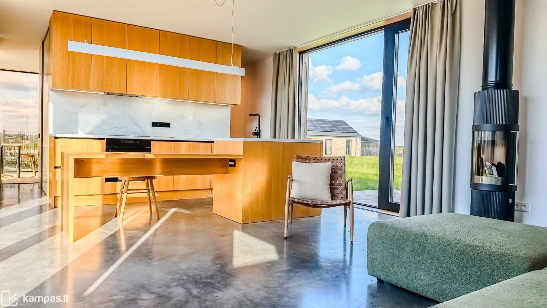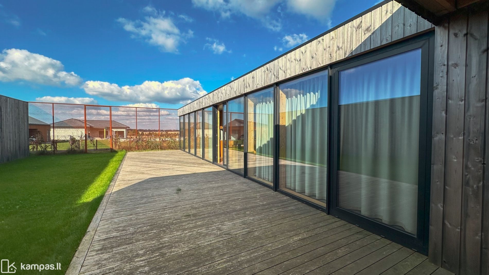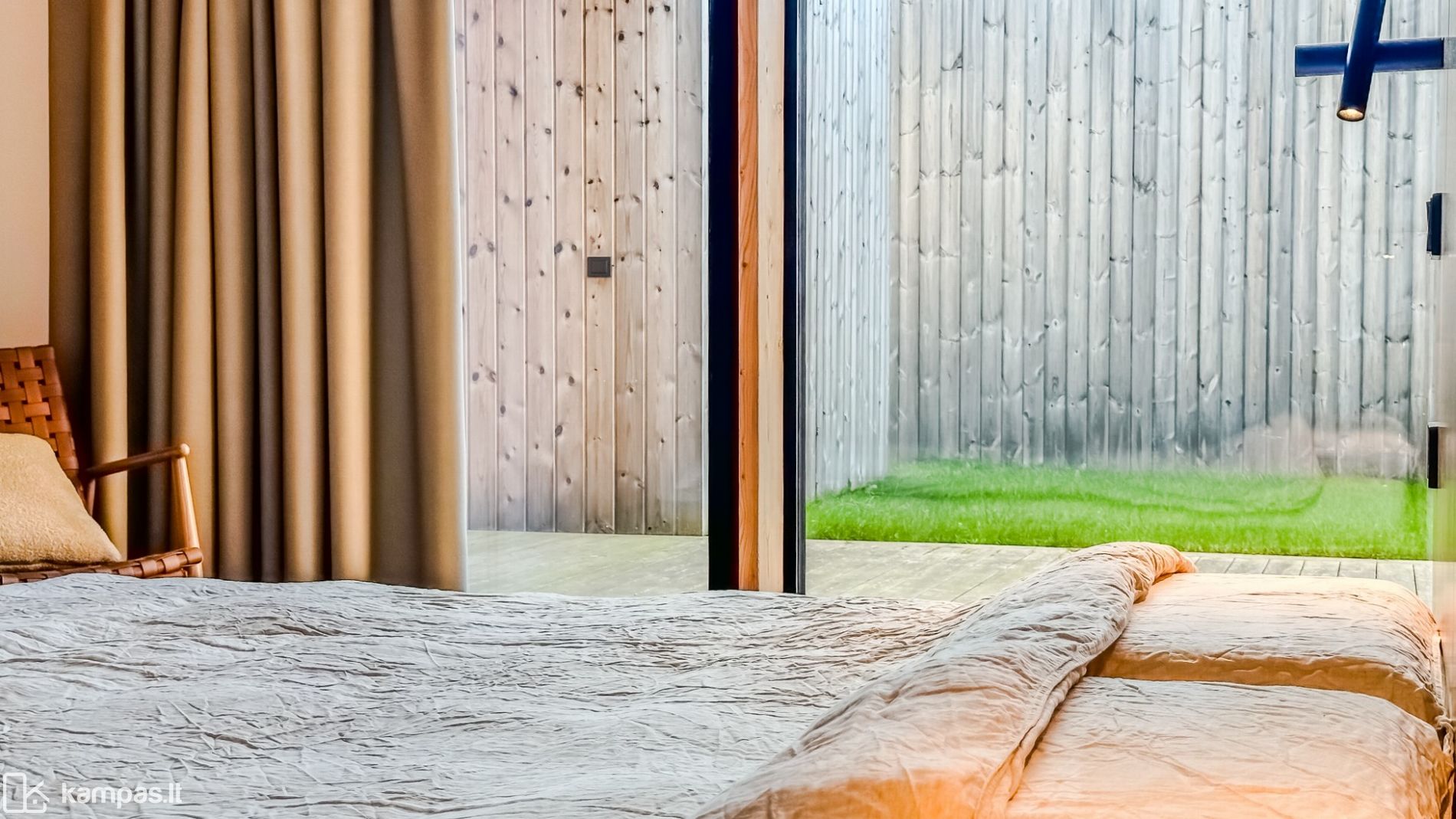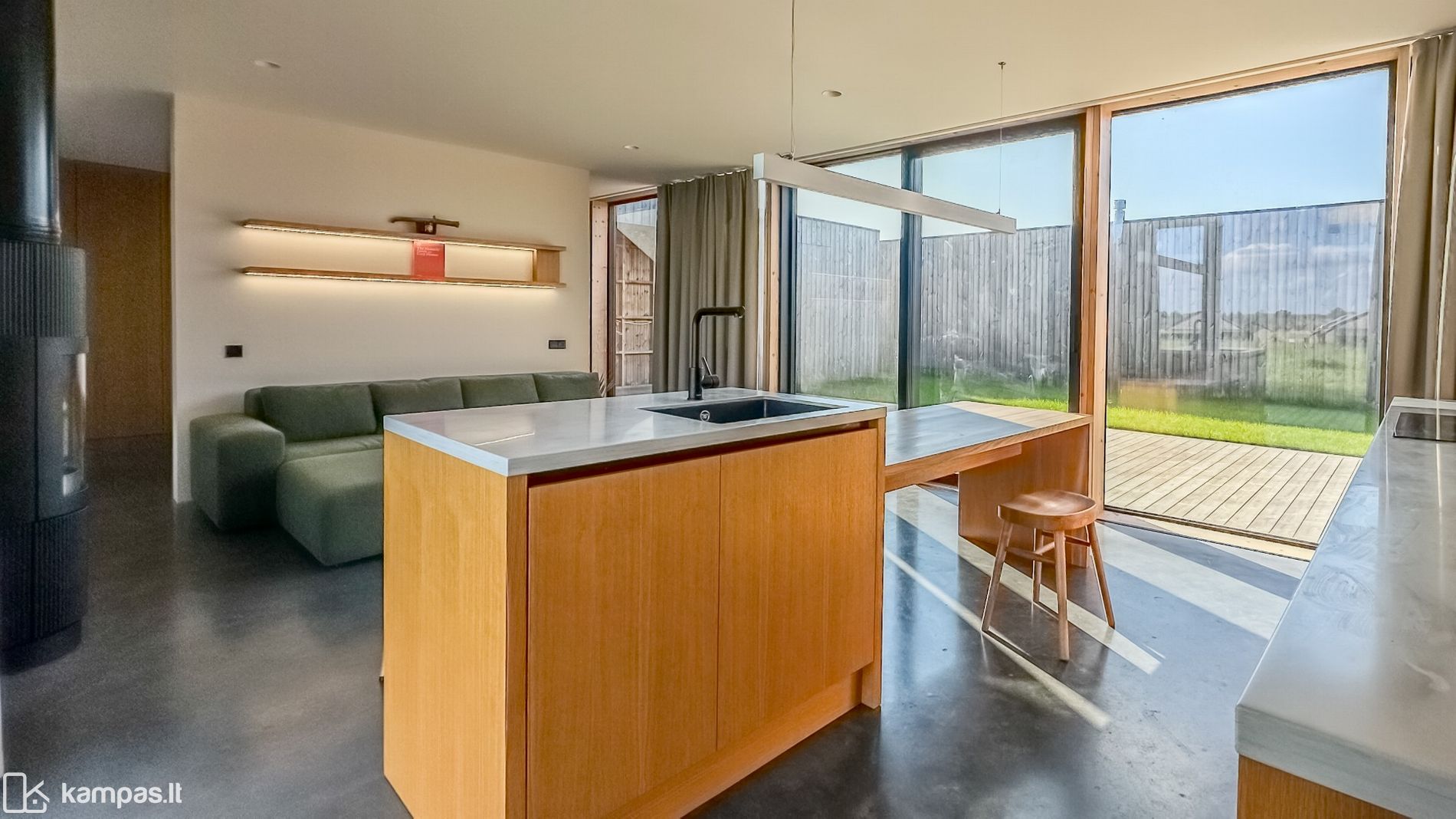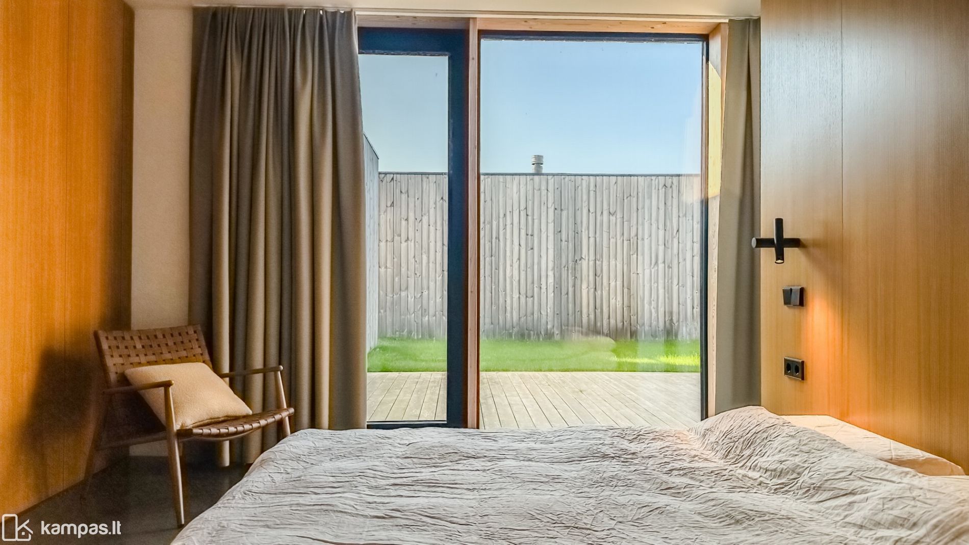 Metams išnuomojamas modernus vieno aukšto 3 kamb. kotedžas Nemirsetoje su dideliu privačiu kiemu.