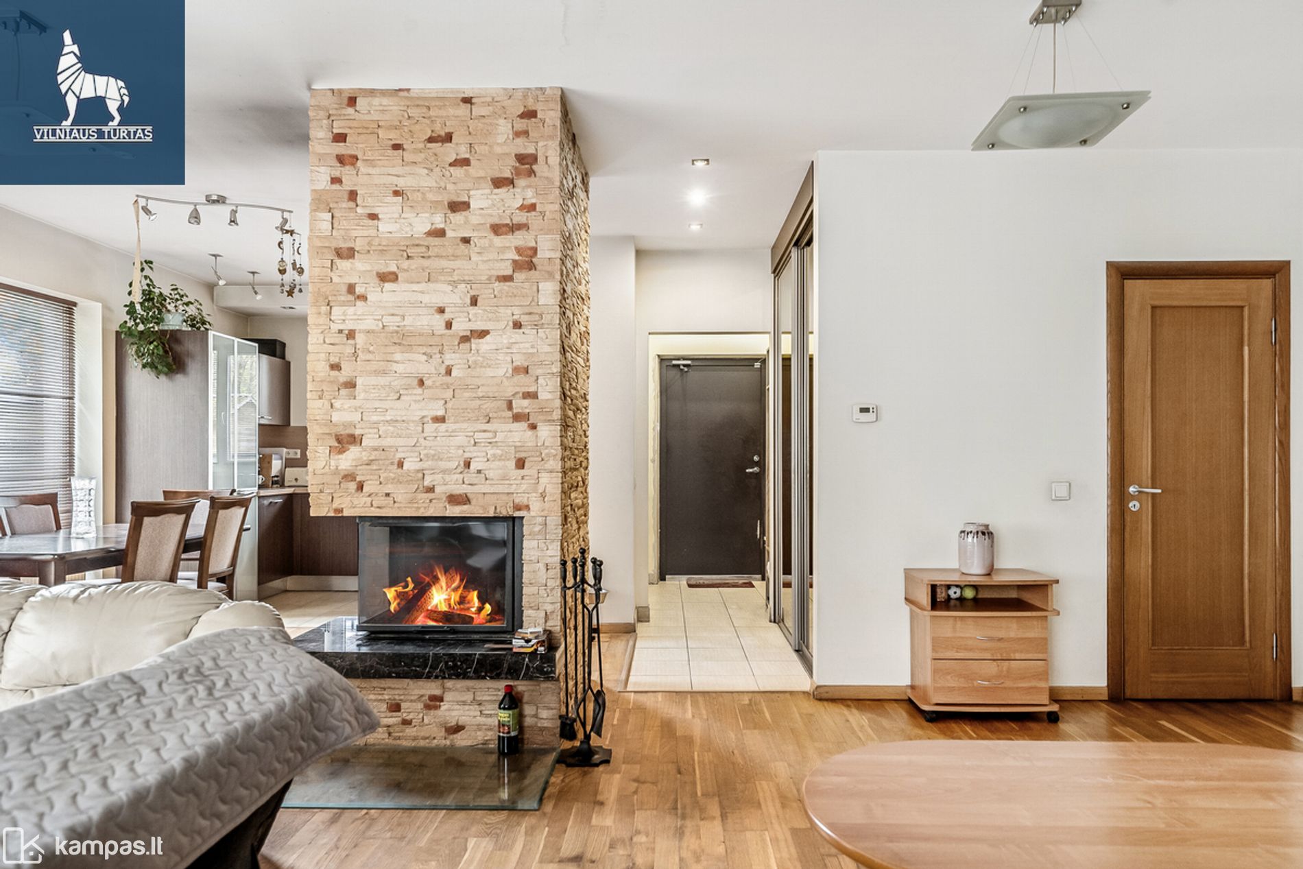- Erdvi svetainė su aukštomis lubomis, židiniu ir išėjimu į terasą – puiki vieta poilsiui