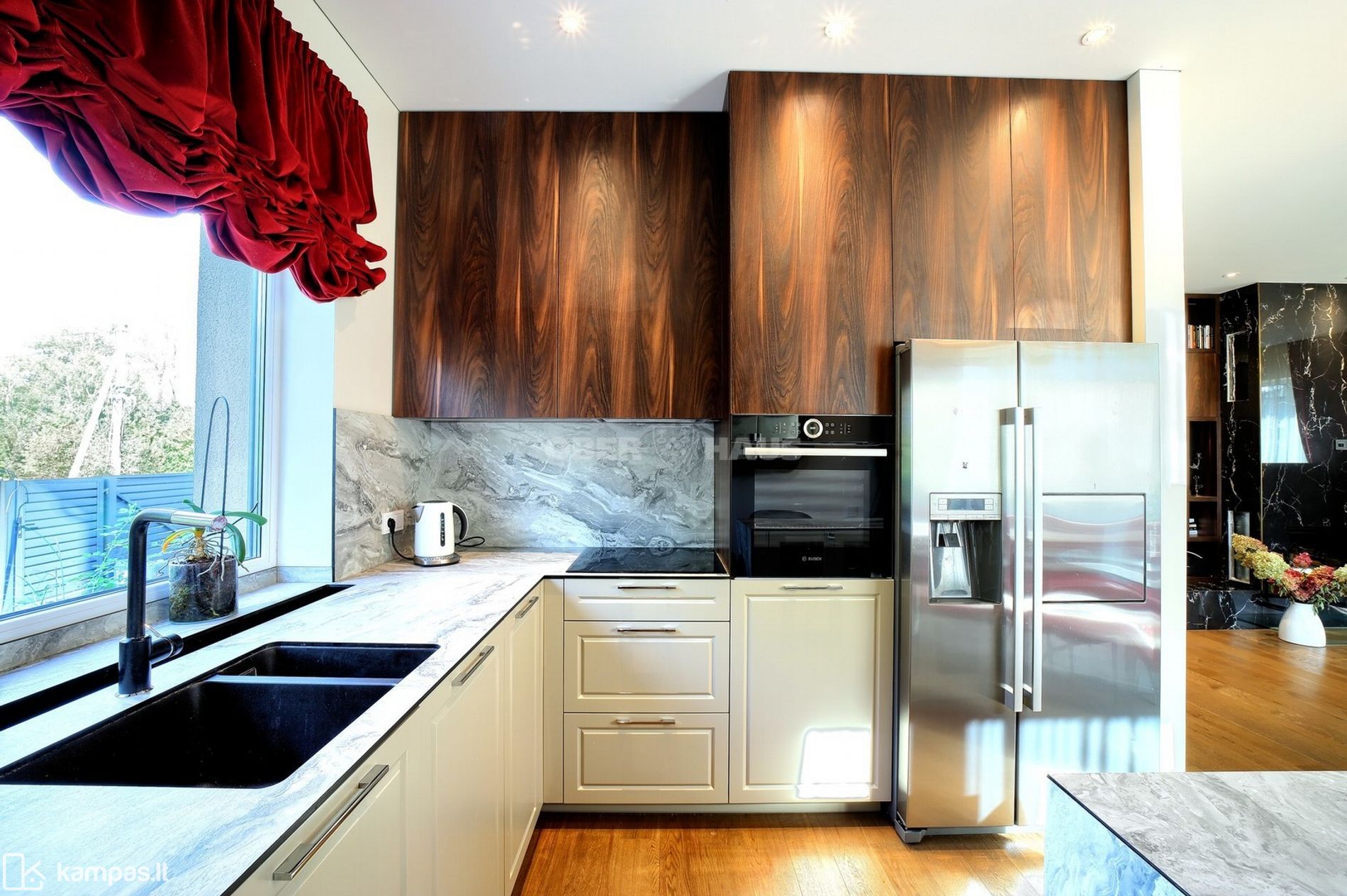 Šis namas, esantis gamtos apsuptyje, siūlo tiek privatumą, tiek patogumą. Interjerą kūrė profesionali dizainerė, tad kiekviena erdvė išplanuota atidžiai, siekiant užtikrinti jaukumą, stilių ir funkcionalumą.