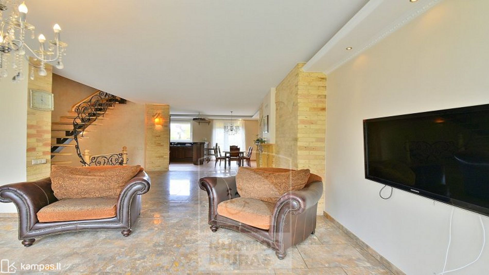 - Iš svetainės su židiniu galima patekti į uždarą vidaus kiemelį;