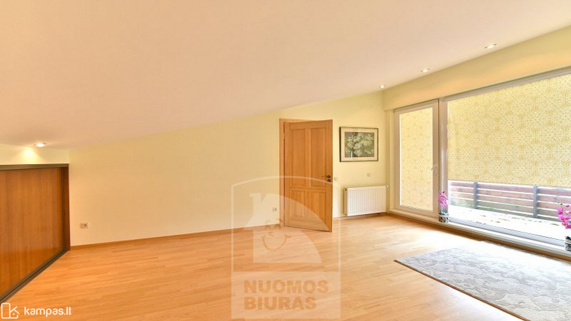- Trečiame aukšte yra vienas didelis erdvus kambarys su šalia esančiu sanmazgu ir balkonas su gražia panorama.