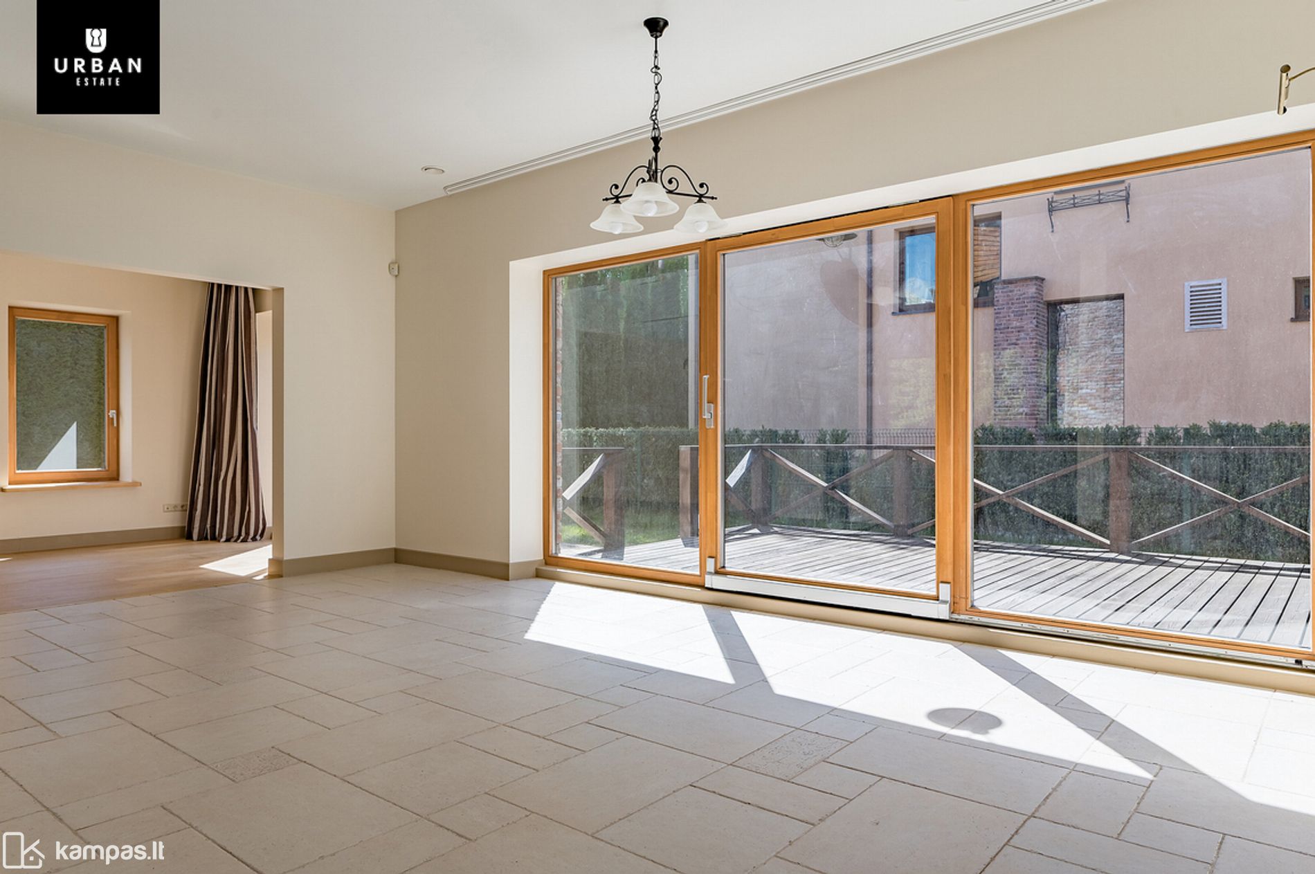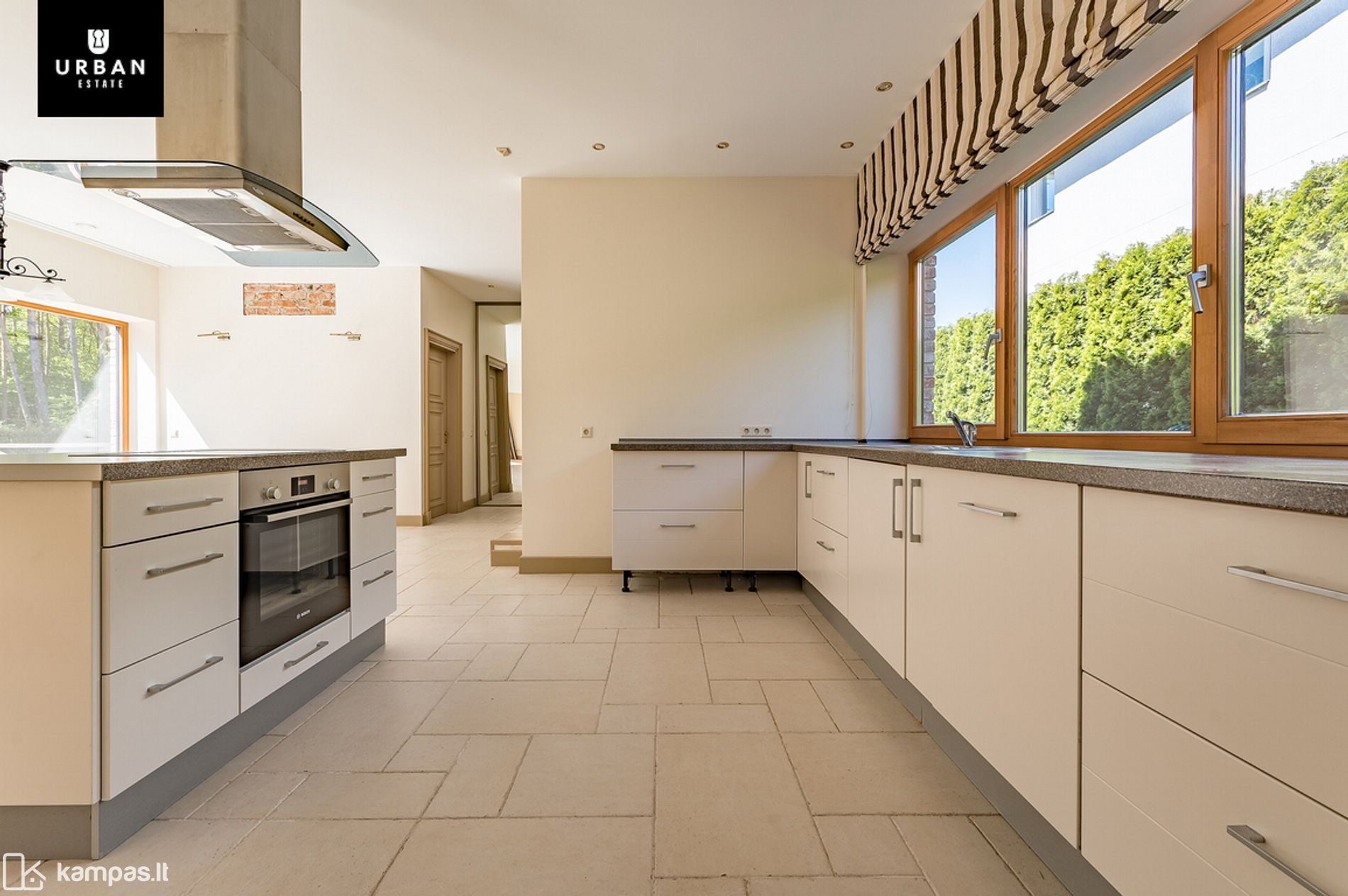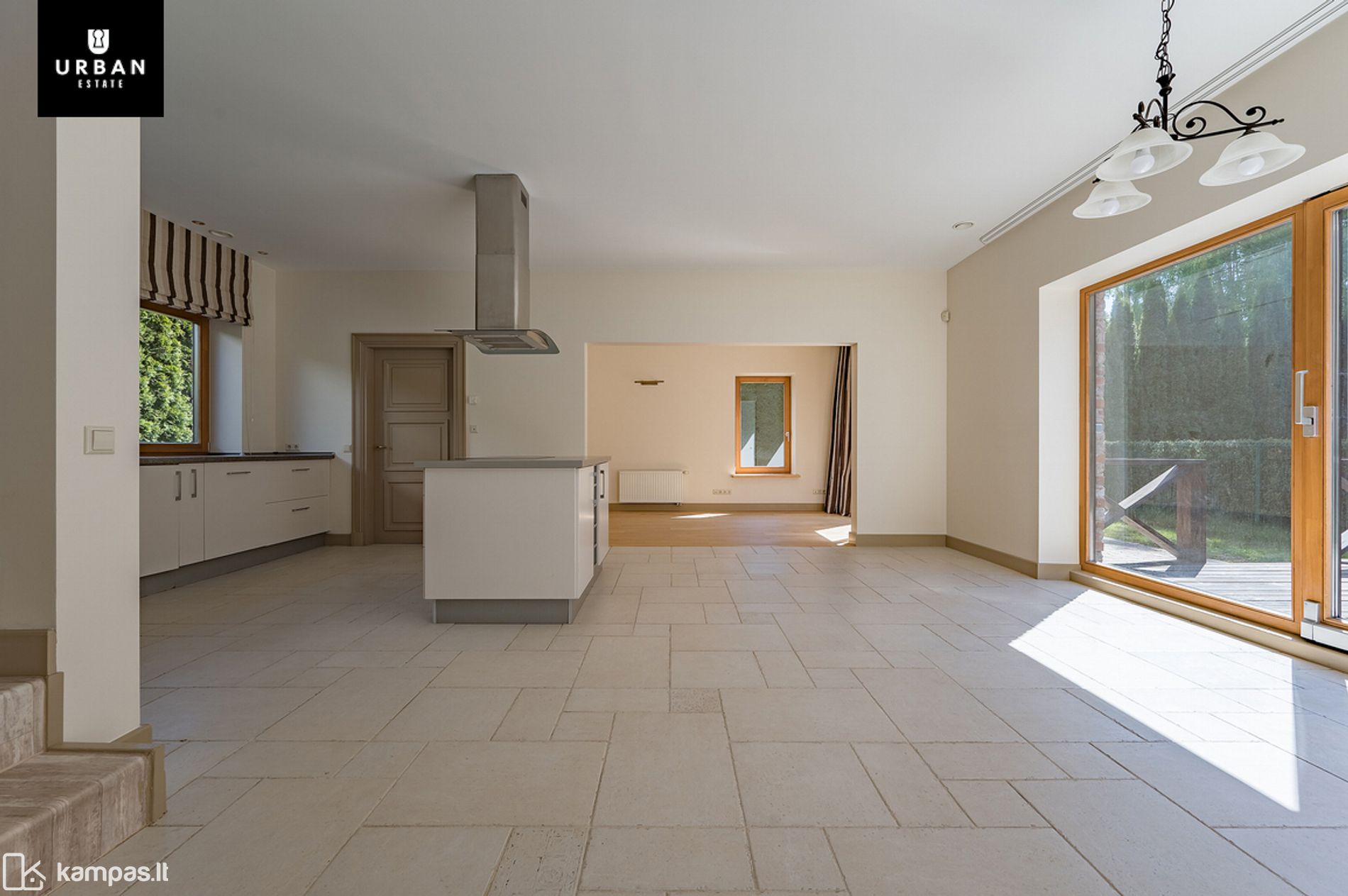 - Dideli panoraminiai langai suteikia daug natūralios dienos šviesos, o saulės spinduliai ištisą dieną nušviečia erdves maloniu jaukumu.