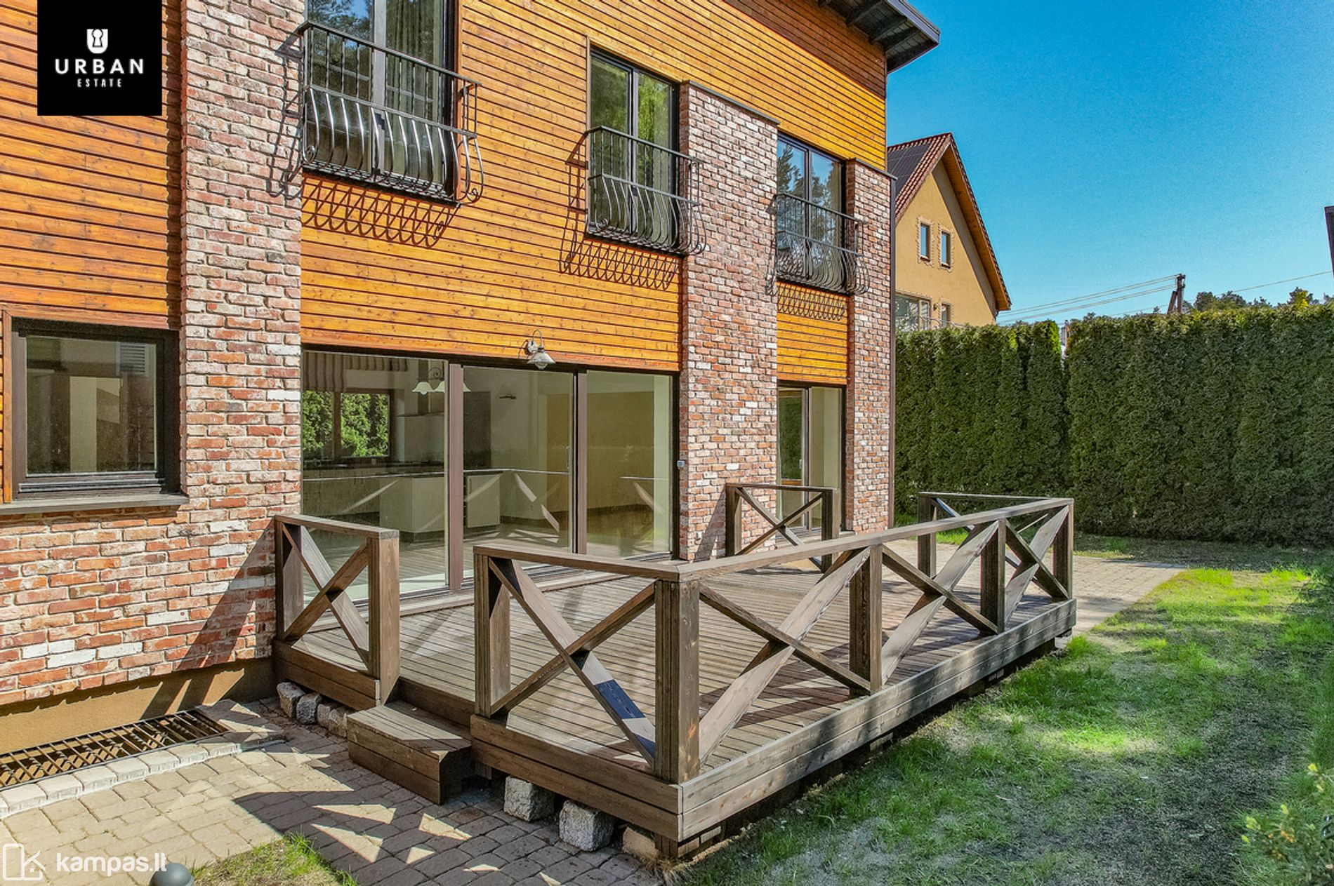 - Namas su nuosavu žemės sklypu, kurio teritorija kruopščiai prižiūrėta, aptverta, išklota trinkelėmis bei apsėtas veja. Įrengtoje terasoje galėsite mėgautis saulės voniomis, ramybe bei poilsiu ar grill vakarais.