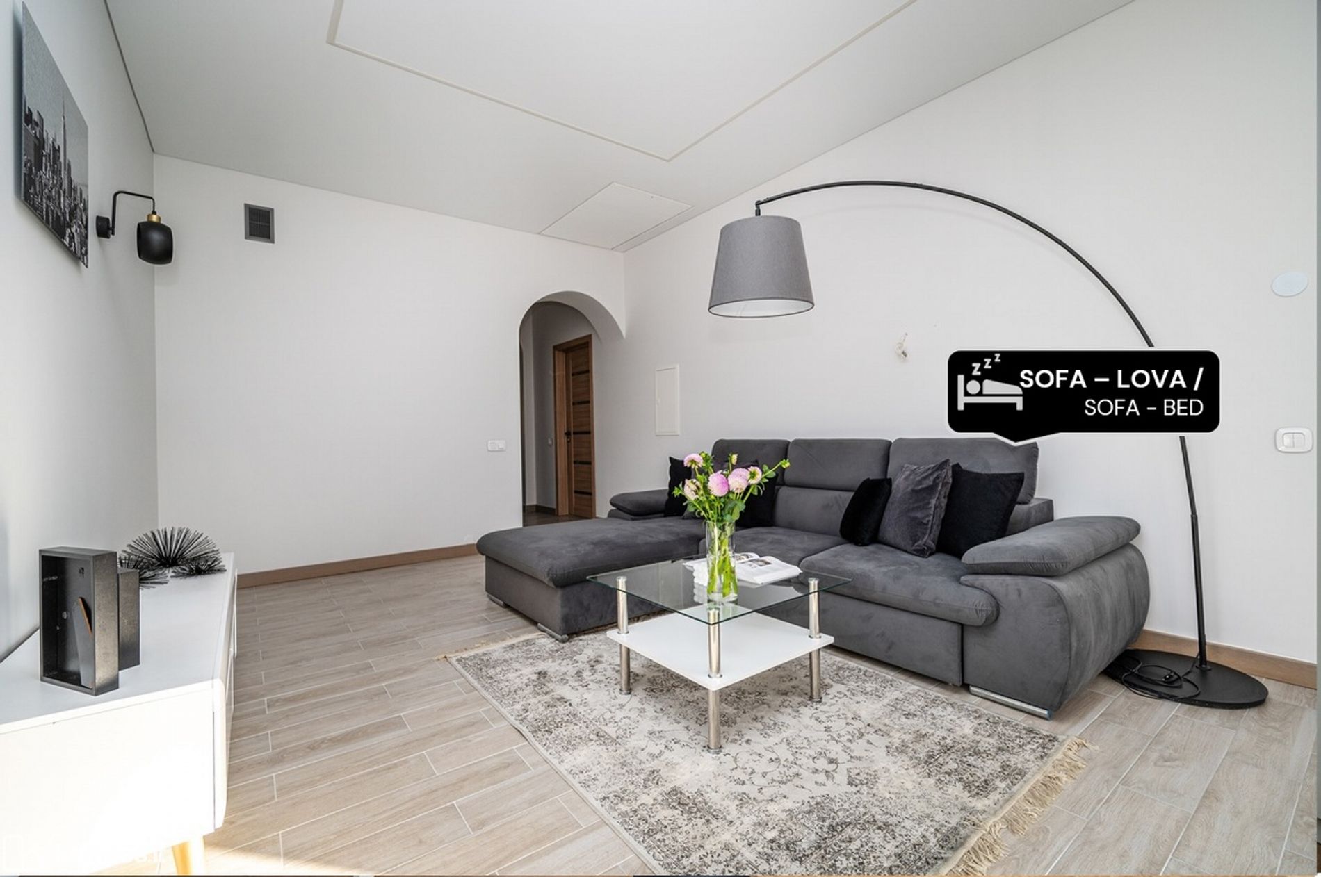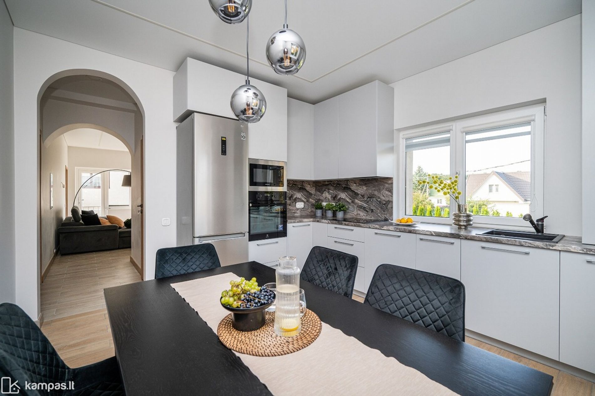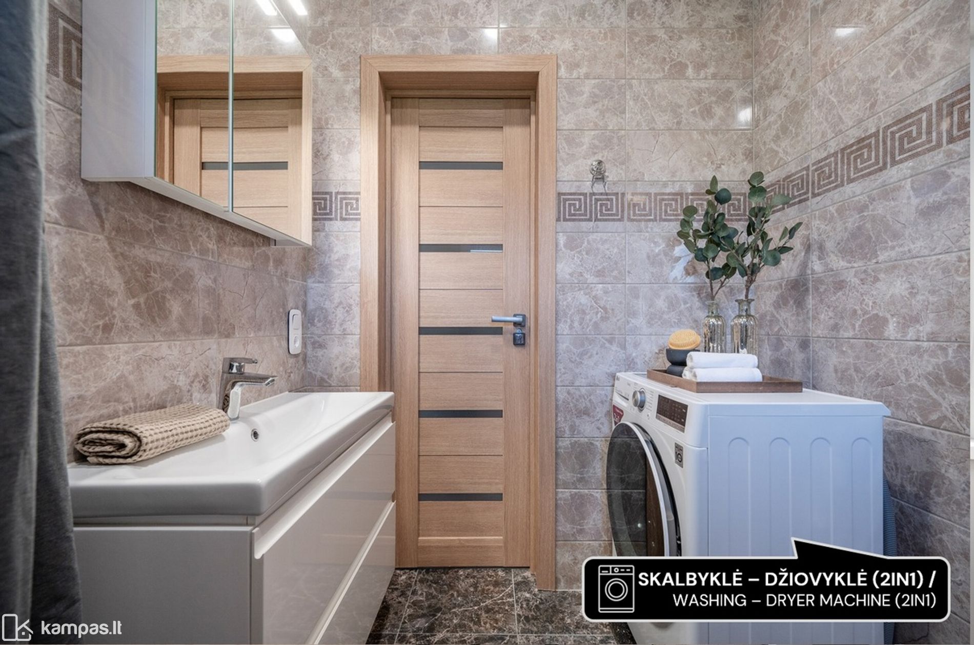 • Nuomojamas su kokybiškais baldais ir buitine technika, matoma nuotraukose (indaplovė, skalbyklė - džiovyklė, šaldytuvas su šaldikliu, gartraukis ir kt.)