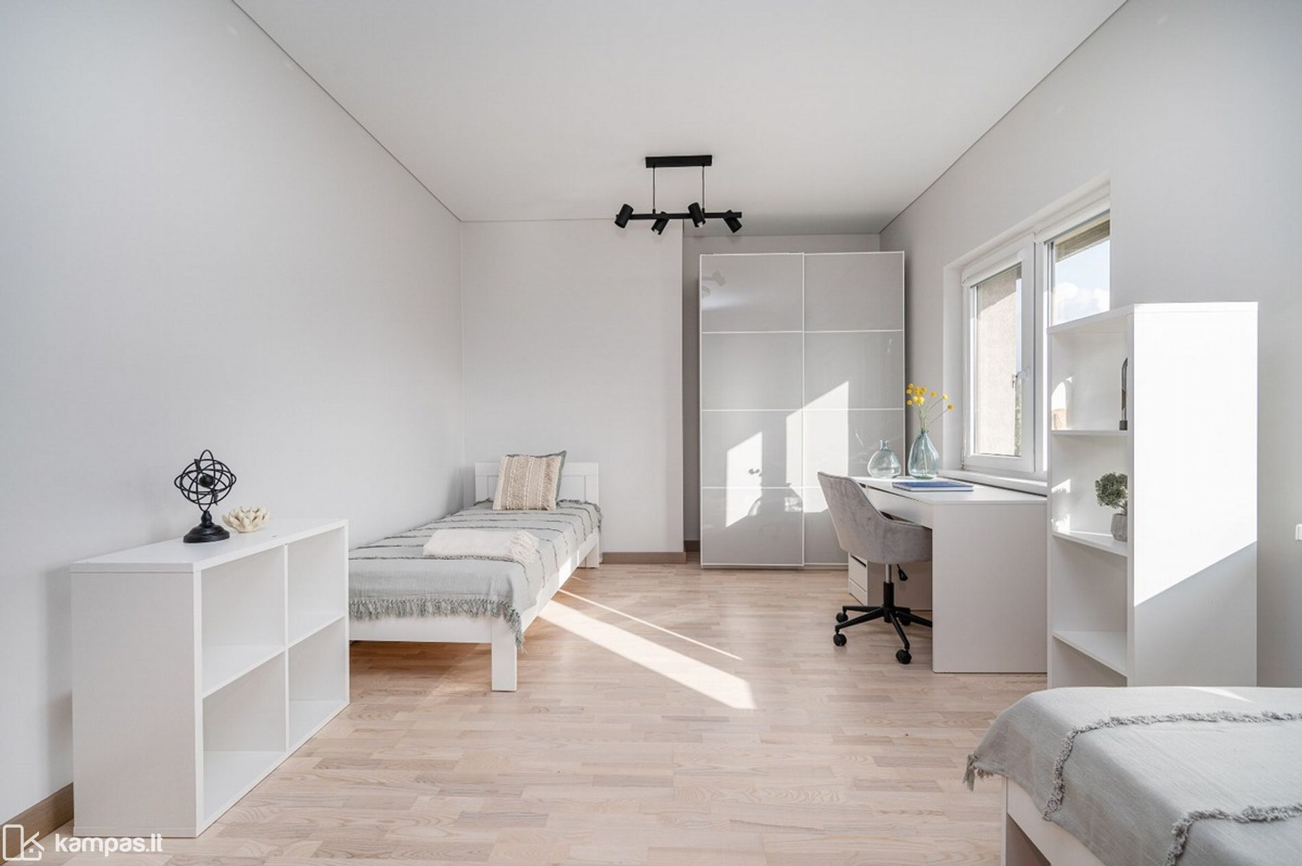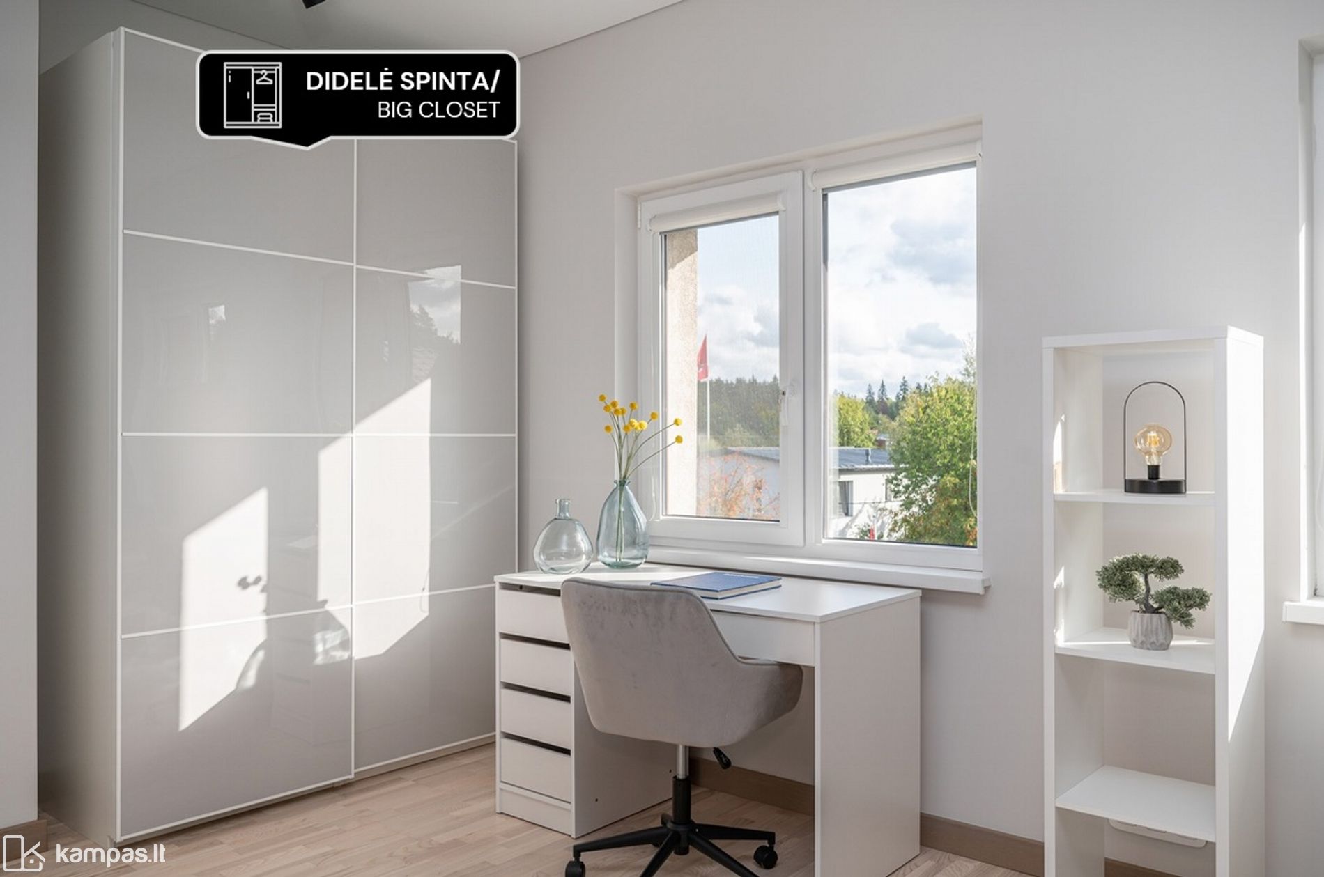 • Yra 3 didelės spintos (prieškambaryje, miegamajame, vaikų kambaryje)