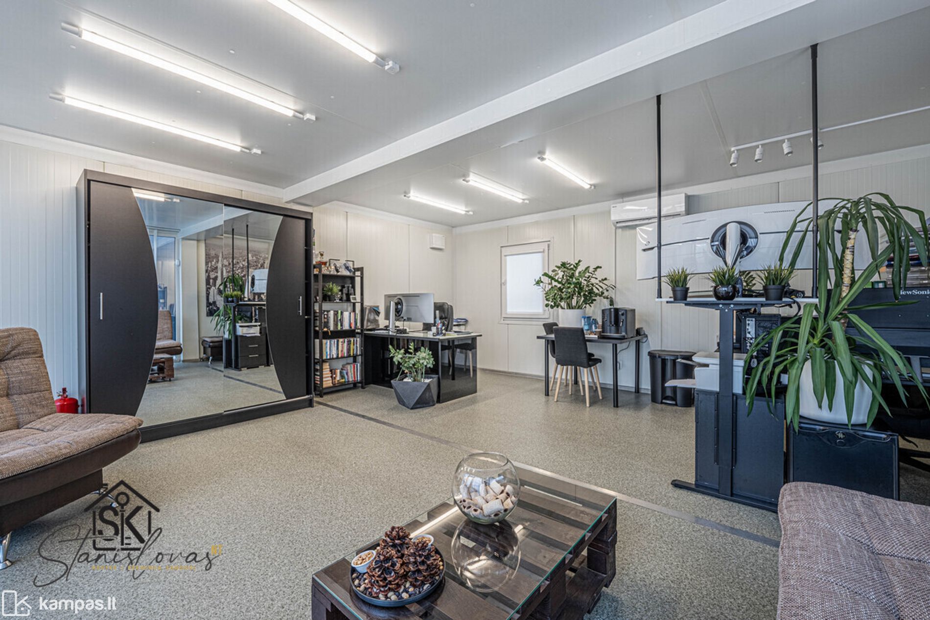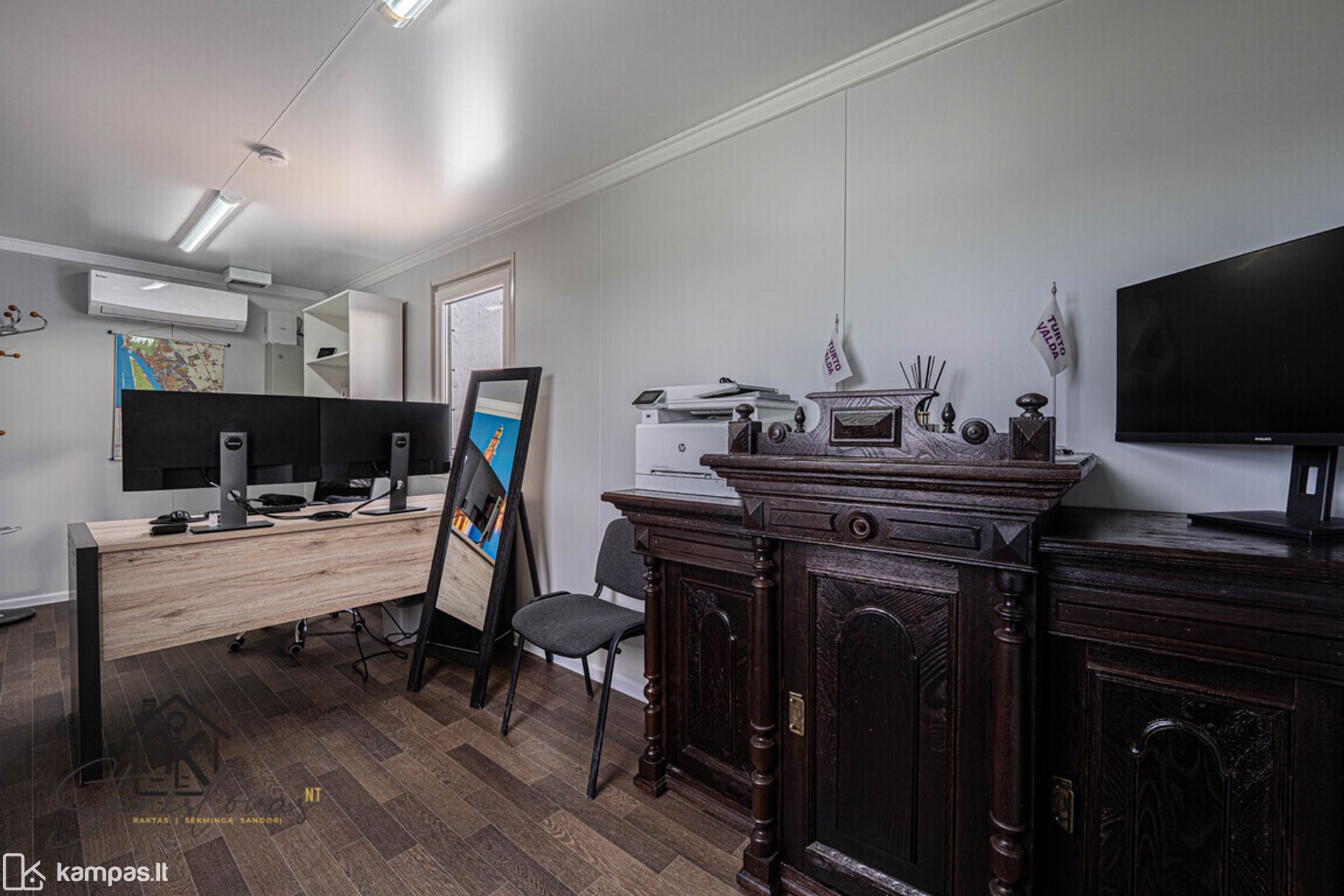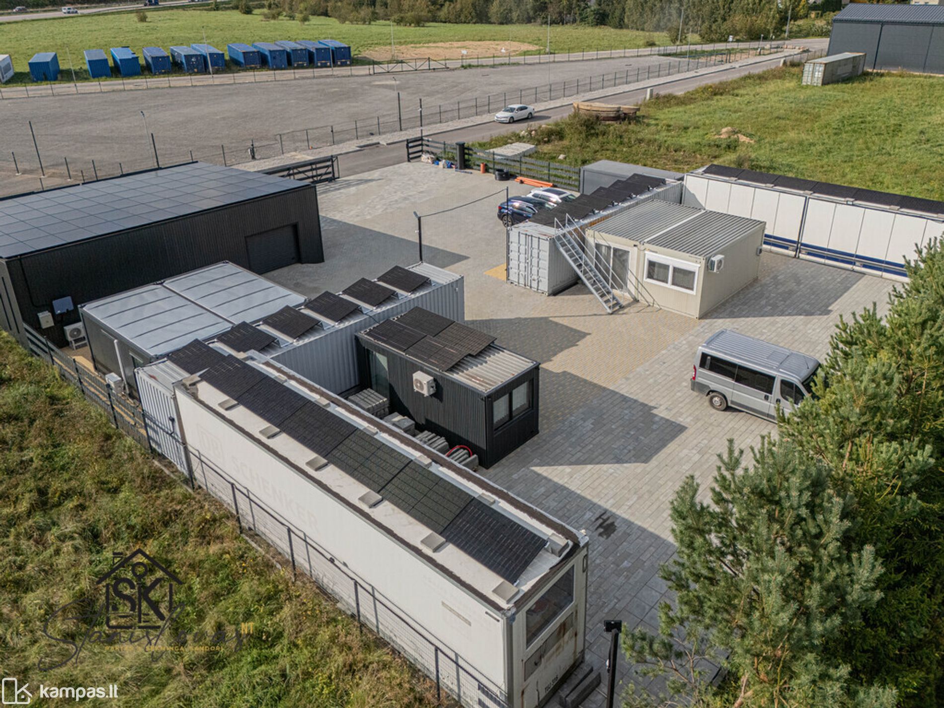 Parduodamas komercinis sandėliavimo ir administracinių pastatų kompleksas su 0.1334 ha žemės sklypu sparčiai besivystančiame komerciniame rajone - Aukštkiemių k., netoli nuo Klaipėdos miesto. Komplekse yra du sandėliai, trys administraciniai pastatai, bei papildomai įrengti du jūriniai konteineriai (12 m ilgio, 2,5 m pločio, 2,9 m aukščio) ir du termokonteineriai (13,5 m ilgio, 2,6 m pločio, 3,2 m aukščio). Termokonteineriai turi gamyklinį 5 cm stirodūro šiltinimą sienose, grindyse ir lubose, po vieną langą galuose bei galimybę pilnai atsidaryti per šoną. Tai patogus sprendimas papildomam sandėliavimui, dirbtuvėms ar temperatūrai jautriems produktams laikyti. Pastatų konstrukcijos – metalas su karkasu, apšiltintos sienos ir grindys. Administracinėse patalpose įrengtas oras–oras šildymas. Objektas išsidėstęs sparčiai besiplečiančiame komerciniame rajone, strategiškai patogioje vietoje – patogus asfaltuotas privažiavimas, geras matomumas nuo kelio. Teritorija pilnai aptverta, sutvarkyta, įrengti automatiniai vartai, trinkelių aikštelė, parkavimui vietos tikrai užteks. Didelis objekto privalumas – įrengta 50 kW saulės elektrinė su hibridiniu inverteriu, kaupiklių galimybe ir elektromobilių krovimo stotele, leidžianti sumažinti sąnaudas. Šis objektas puikiai tinka įvairioms veikloms: sandėliavimui, gamybai, prekybai ar paslaugoms. Tai patikima investicija su plėtros galimybėmis, užtikrinanti ilgalaikę vertės augimo perspektyvą.