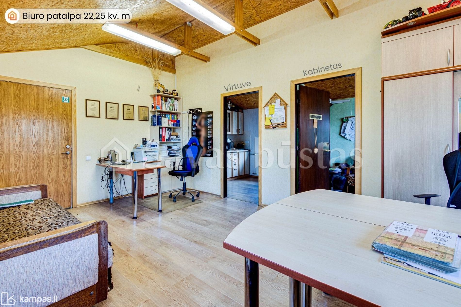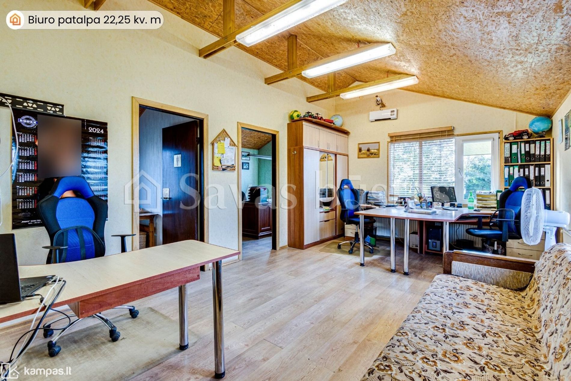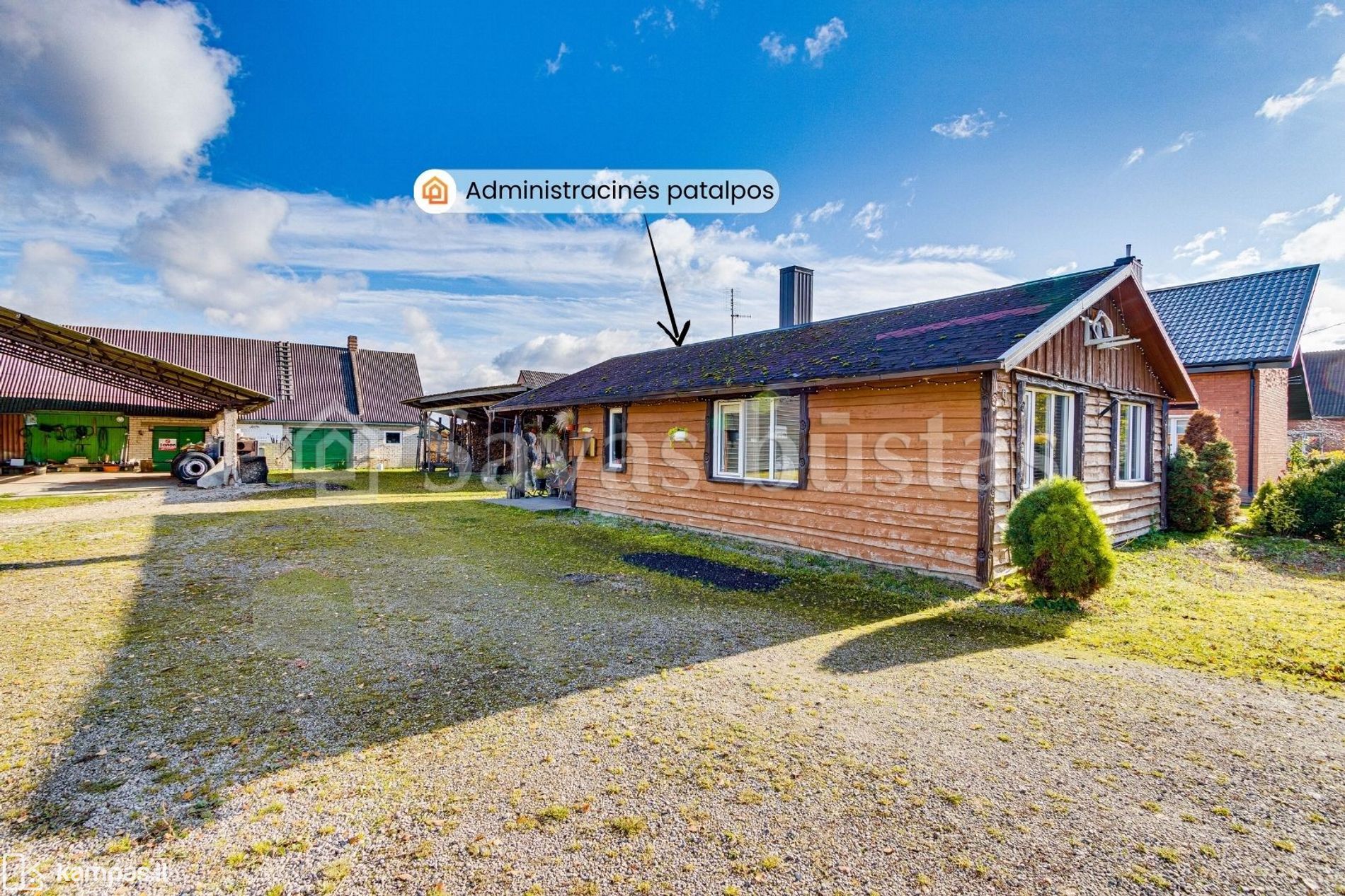 Administracinis pastatas karkasinės konstrukcijos, kurio bendras plotas – 61,68 kv. m. Šildymas – kietu kuru. Prijungtas gyvenvietės vandentiekis ir kanalizacija, vanduo šildomas kombinuotu vandens šildytuvu. Patogus patalpų išplanavimas: dvi biuro patalpos, darbuotojų poilsio kambarys, virtuvė, dušo ir WC patalpa.