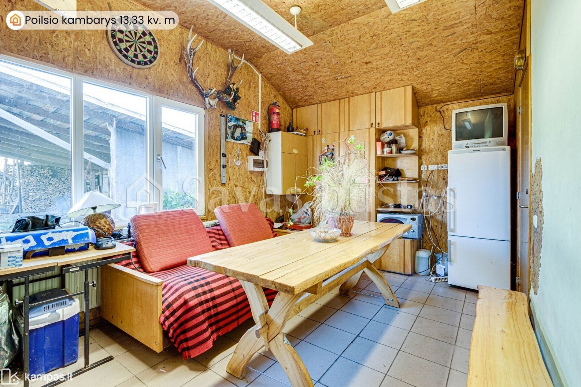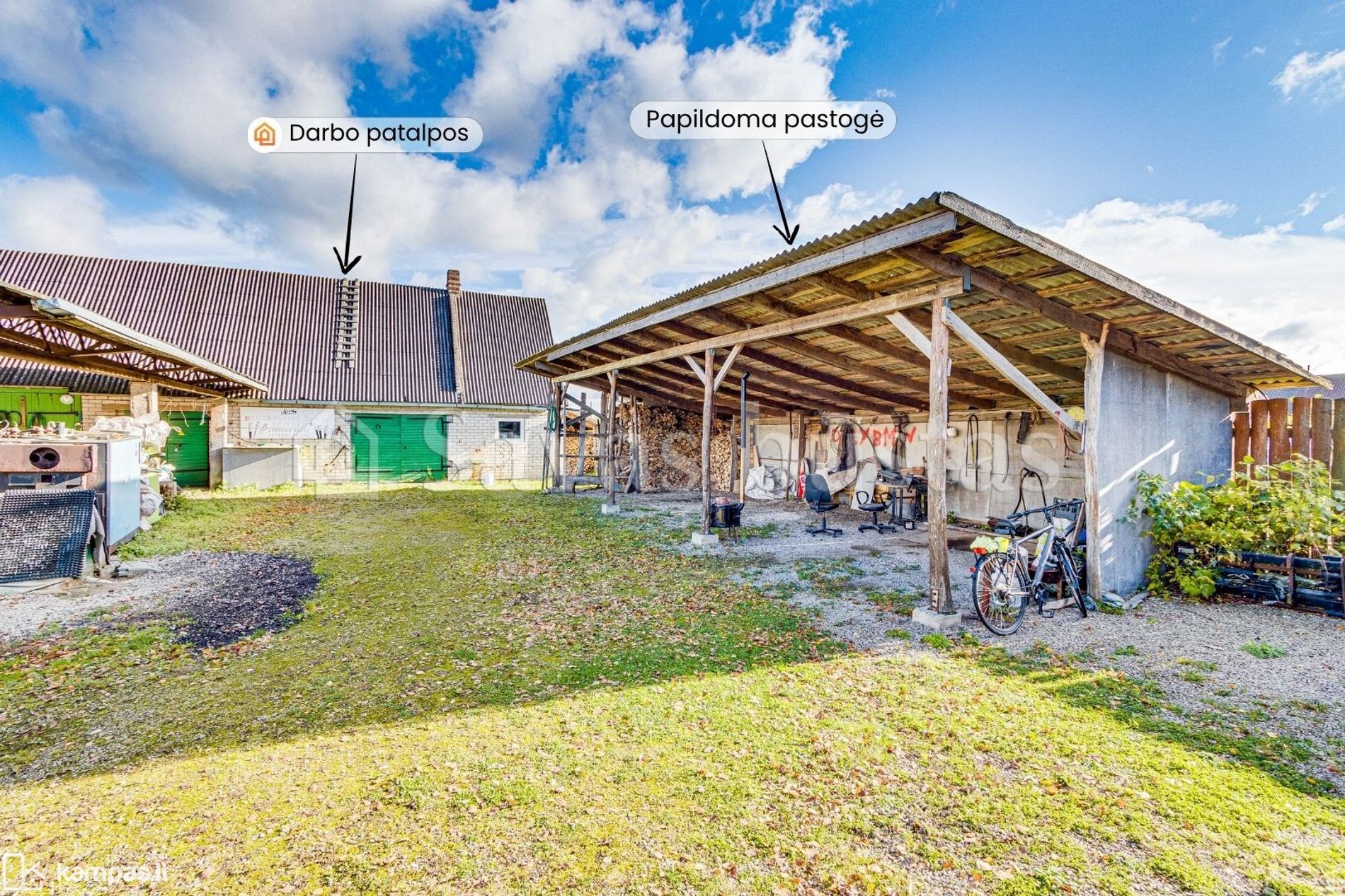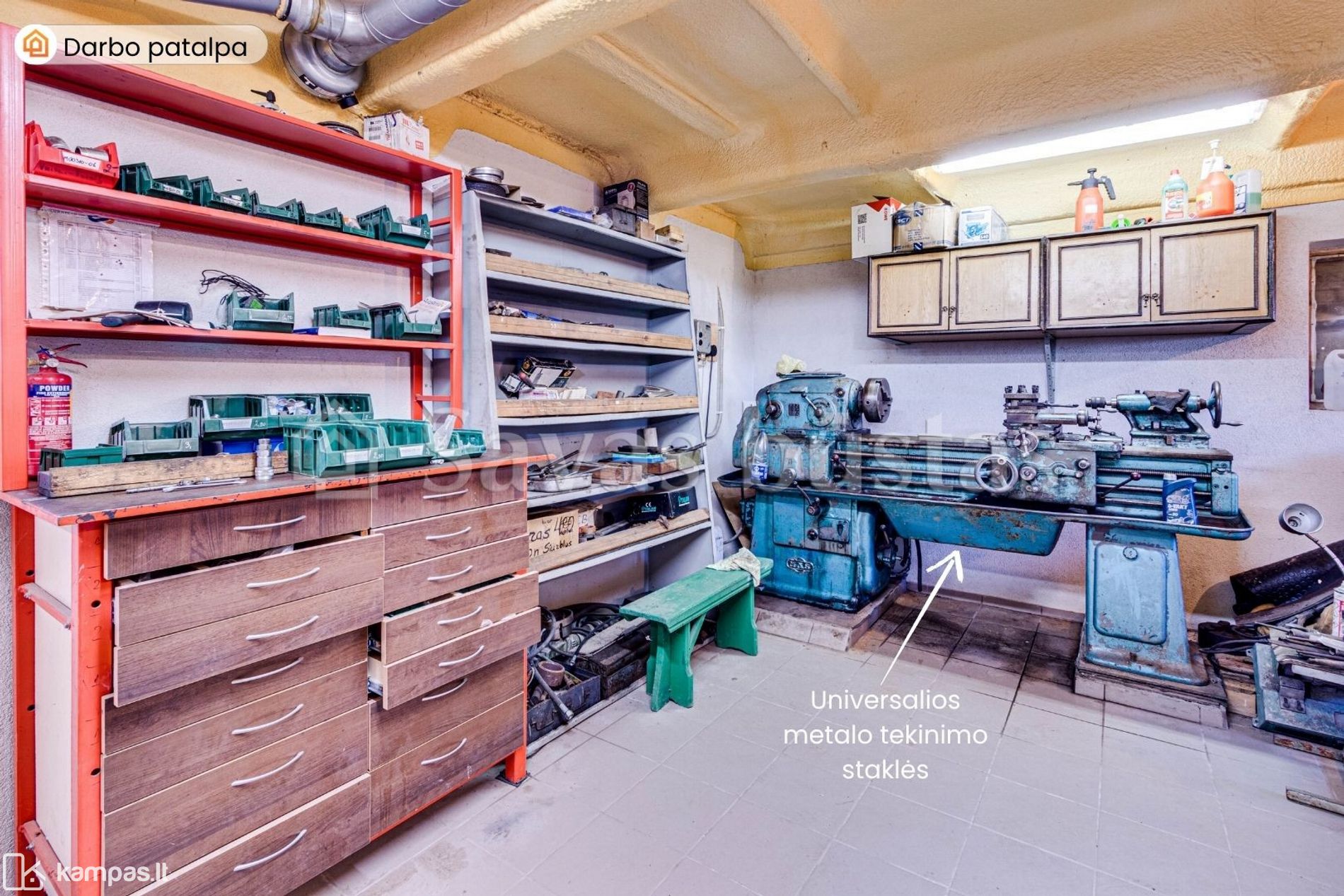 Papildomos darbinės patalpos - 76,86 kv. m bendro ploto. Šildymas - kieto kuro pečiumi. Paliekamos universalios metalo tekinimo staklės bei lentynos.