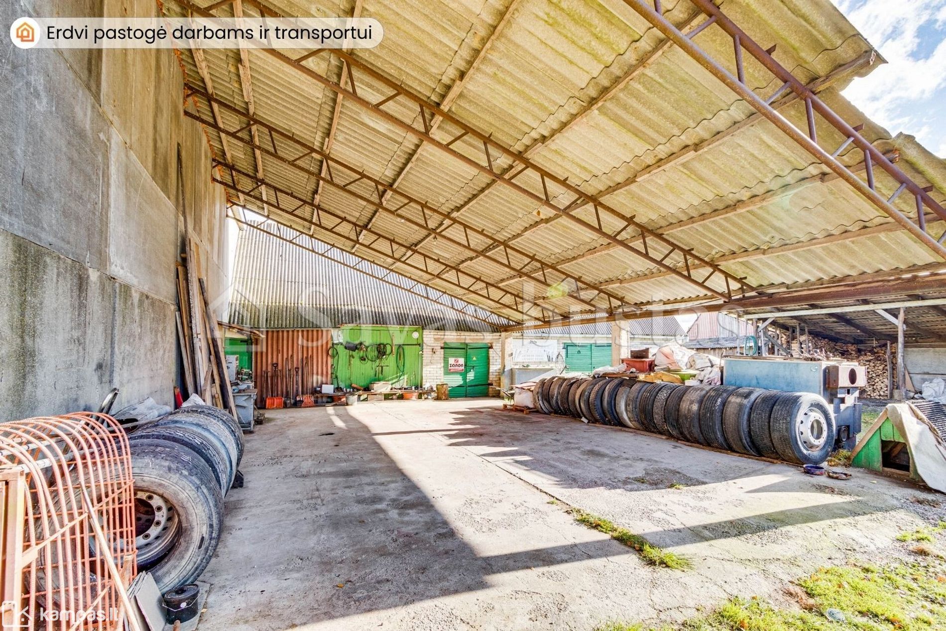 Pastatai yra ant valstybinio 25 arų žemės sklypo (yra galimybė išsipirkti). Didelis kiemas - patogus automobilių parkavimui. Patogus privažiavimas tiek iš pagrindinių kelių, tiek iš aplinkinių gyvenviečių.