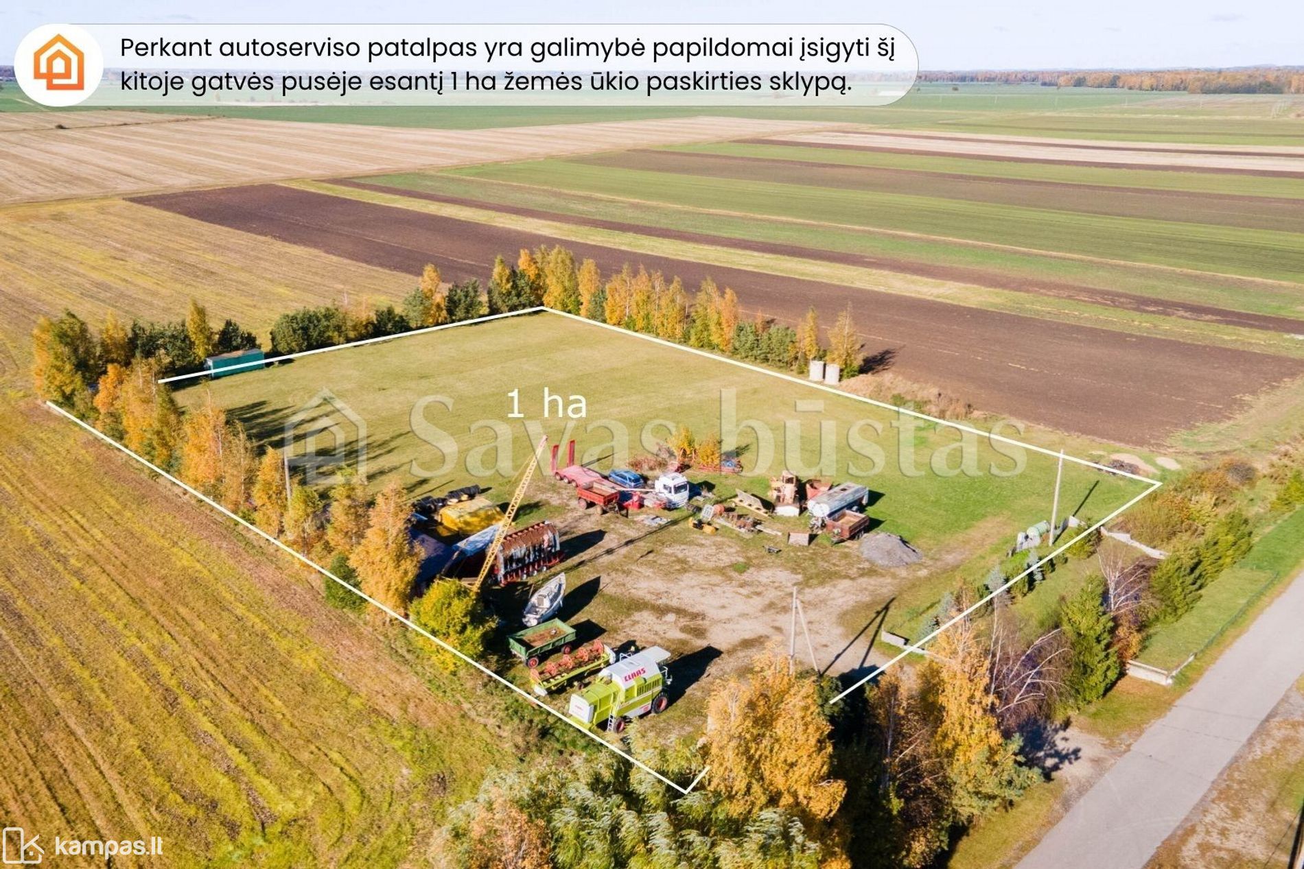 PERKANT AUTOSERVISO PATALPAS, UŽ PAPILDOMĄ KAINĄ GALIMA ĮSIGYTI 1 HA PLOTO SKLYPĄ, esantį kitoje gatvės pusėje. Patogus privažiavimas ir susisiekimas iš vienos pusės į kitą. Teritorija aptverta, yra pastogė. Erdvi aplinka, tvarkinga teritorija, patogi automobilių parkavimui bei technikos judėjimui. Šalia sklypo teka upelis Lašmuo.