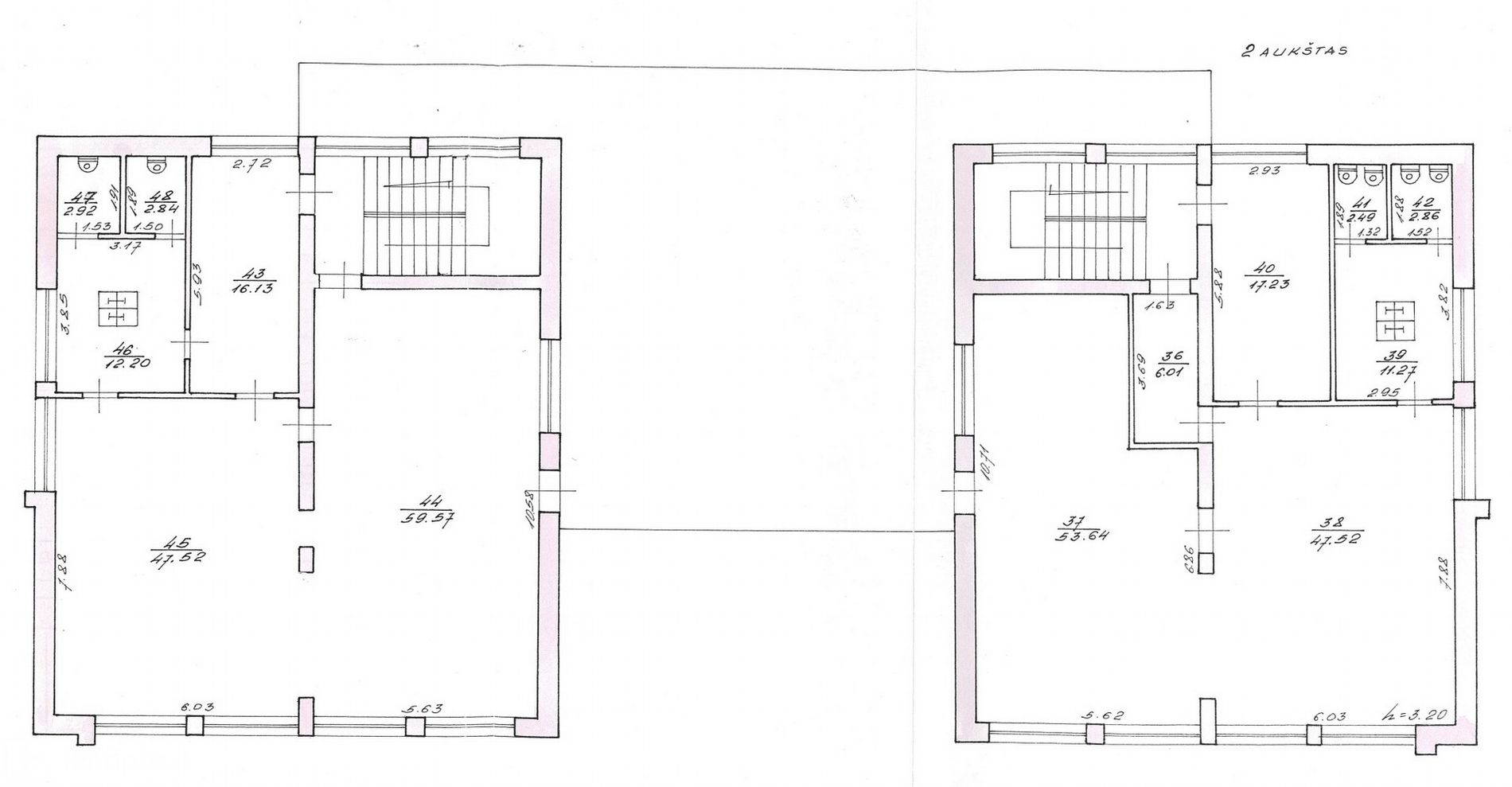 Pastatas yra geros konstrukcinės būklės, erdvus, su keliomis atskiromis patalpomis ir įėjimais.