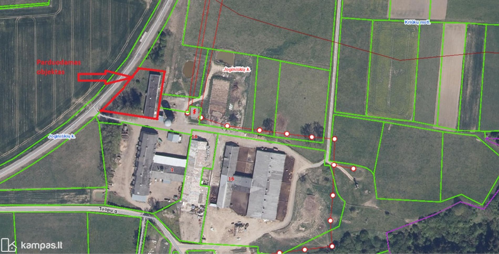 Objektas yra Šakių r.,Jogniškių k. Prie pat Kriūkų mstl.ir pagrindinio asfaltuoto kelio.Esamas pastatas randasi pramoninėje zonoje ,tad galimi pastato ,sklypo paskirties keitimai.Prie pat transformatorinė ,tad reikalui esant elektros galios didinimas irgi nesudarytų keblumų, ir priešgaisrinis tvenkinys.
