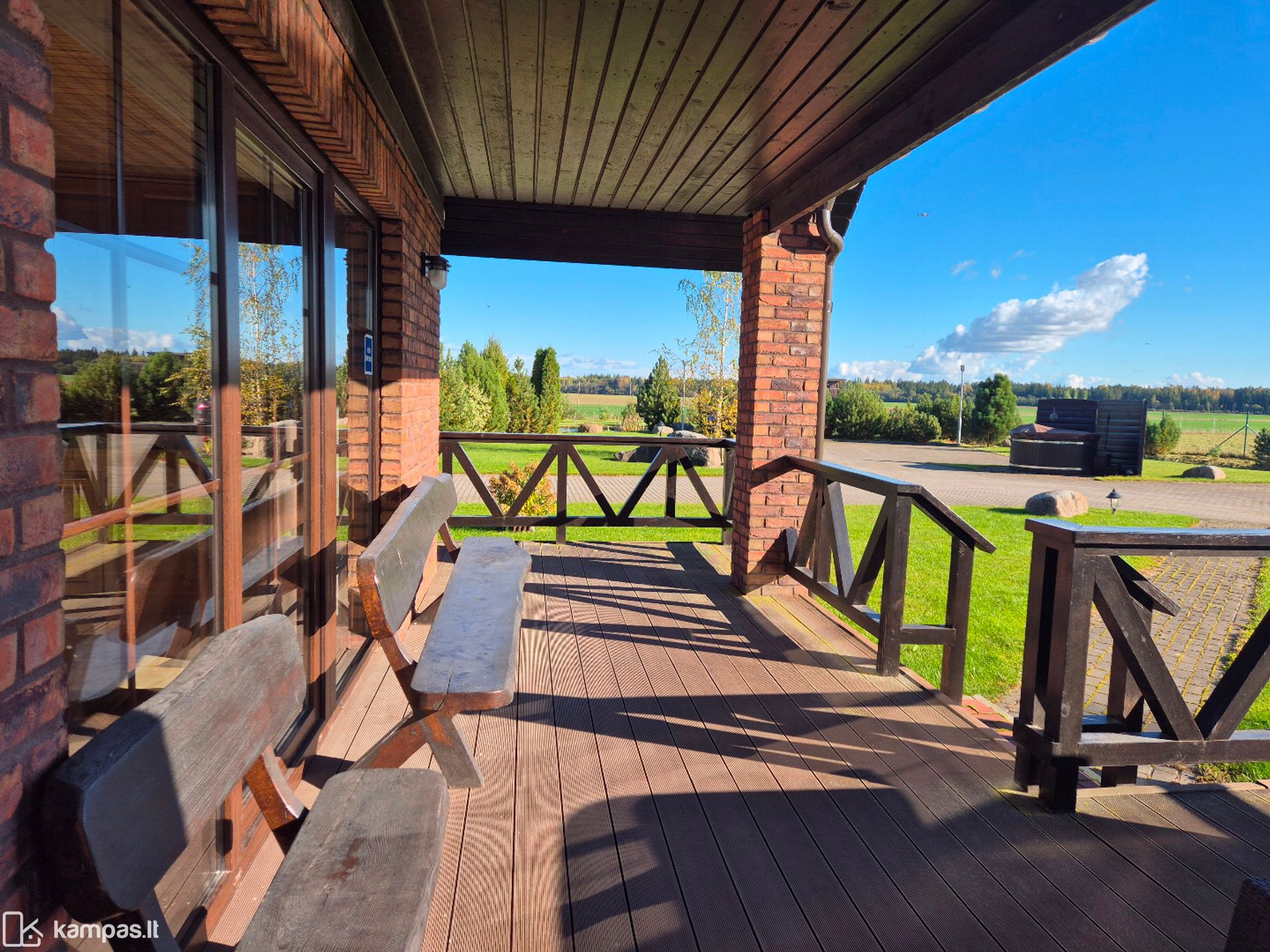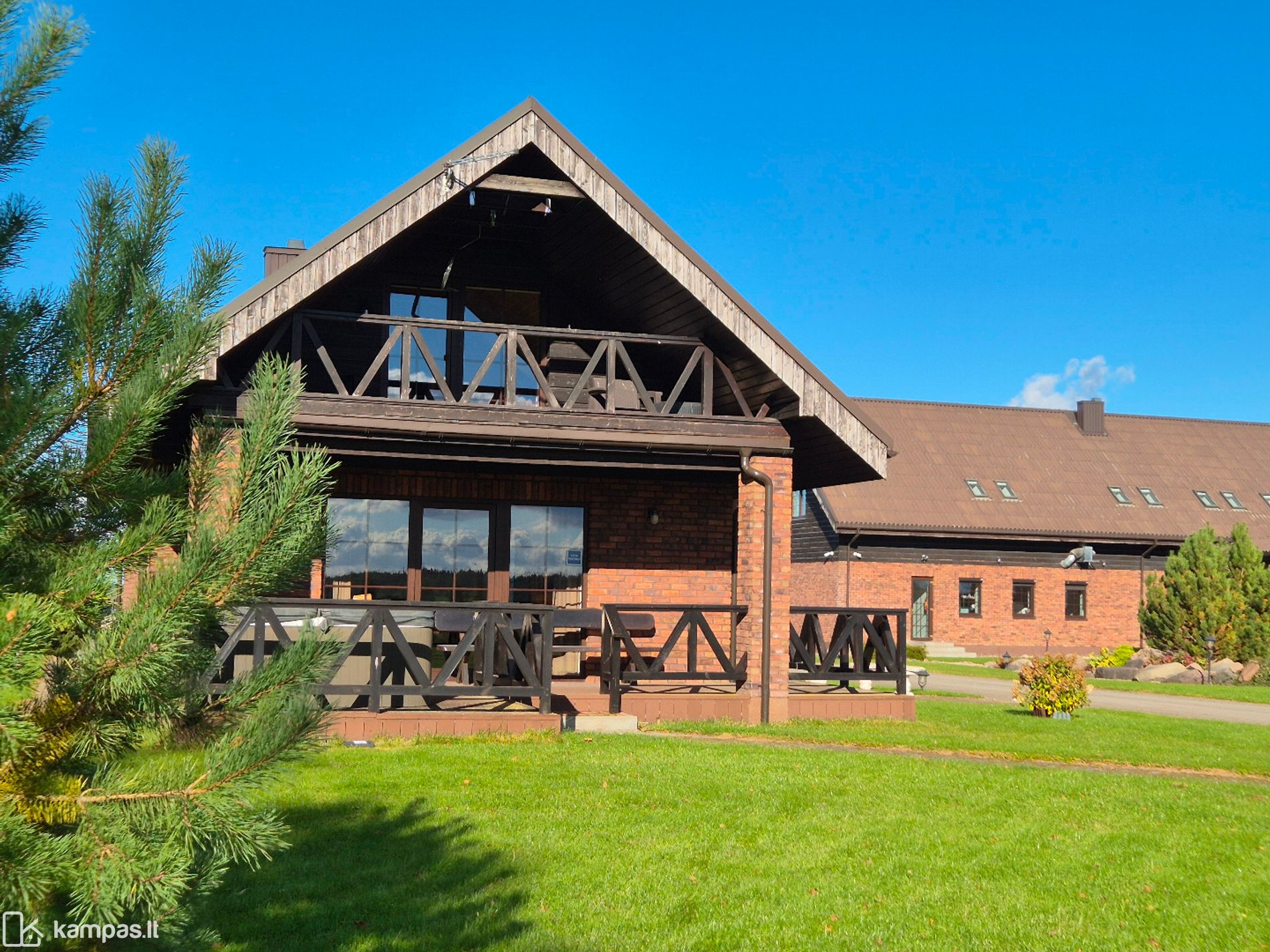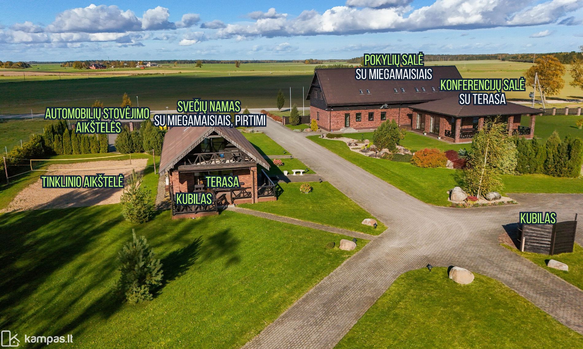 - Pagrindiniame pastate yra POKYLIŲ SALĖ, talpinanti iki 80 svečių (381,94 m²), puikiai tinkanti renginiams. Profesionaliai ĮRENGTA VIRTUVĖ su „Metos“ įranga. Jaukūs MIEGAMIEJI su visais patogumais antrame aukšte.