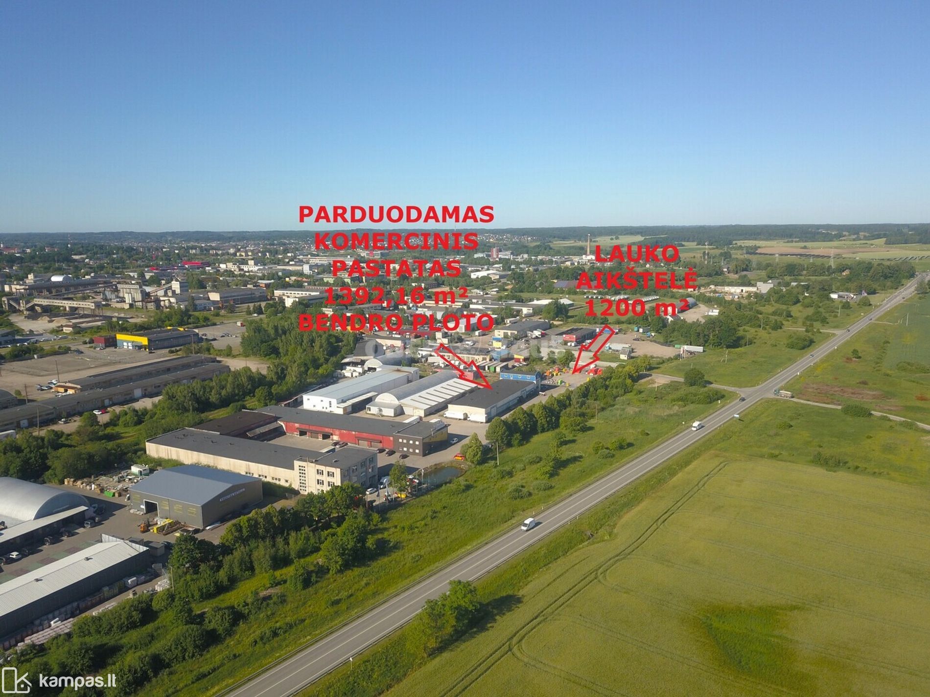 bei nuo kelio puikiai matomoje vietoje. Šalia pastato esančioje teritorijoje aptverta saugoma lauko sandėliavimo aikštelė. Pastate esančios prekybinės, sandėliavimo bei biurų patalpos sukurs visas sąlygas sėkmingam Jūsų verslui, o puiki pastato strateginė vieta - komercinį patrauklumą, taip reikalingą verslui.