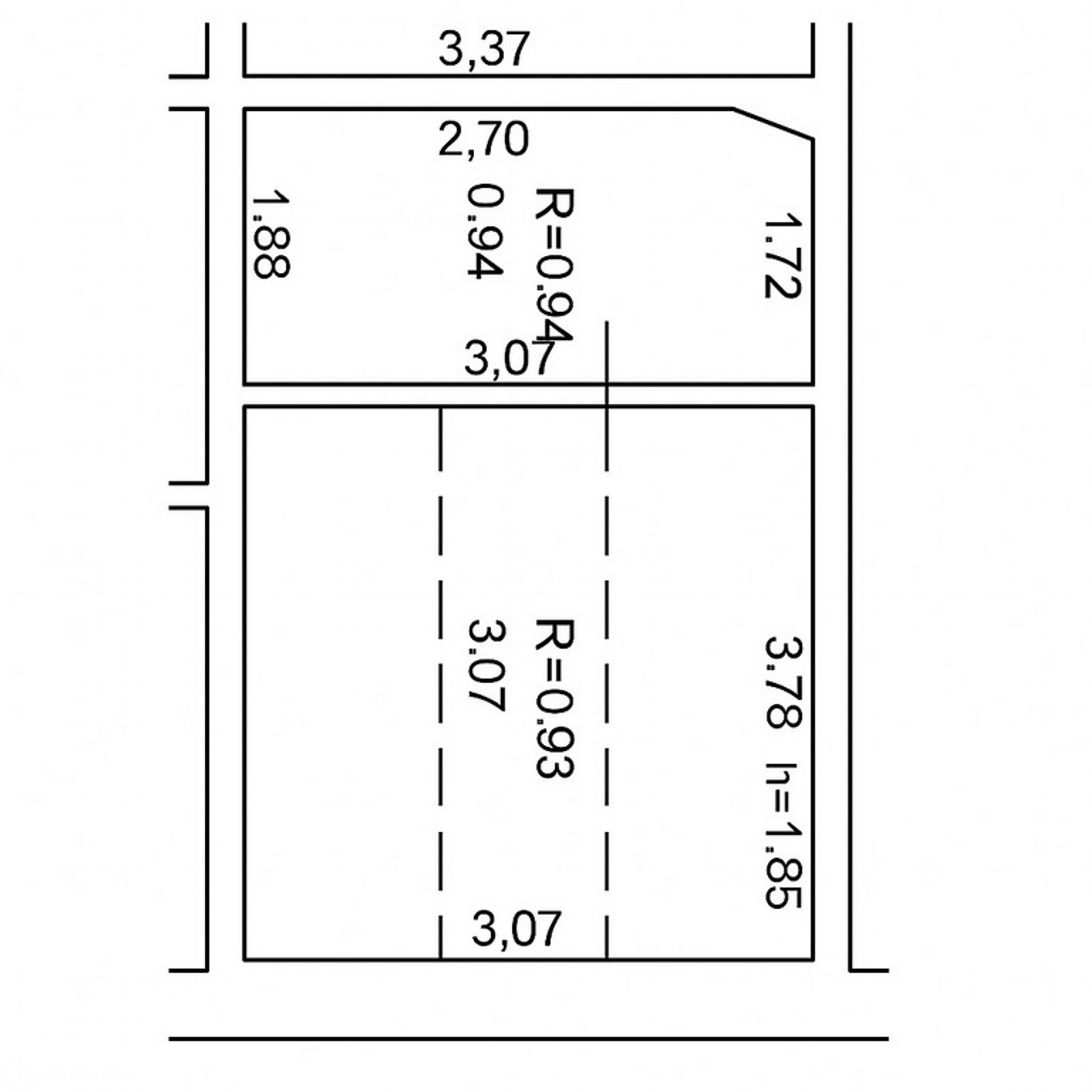 Garažo plotis: 3,33 m