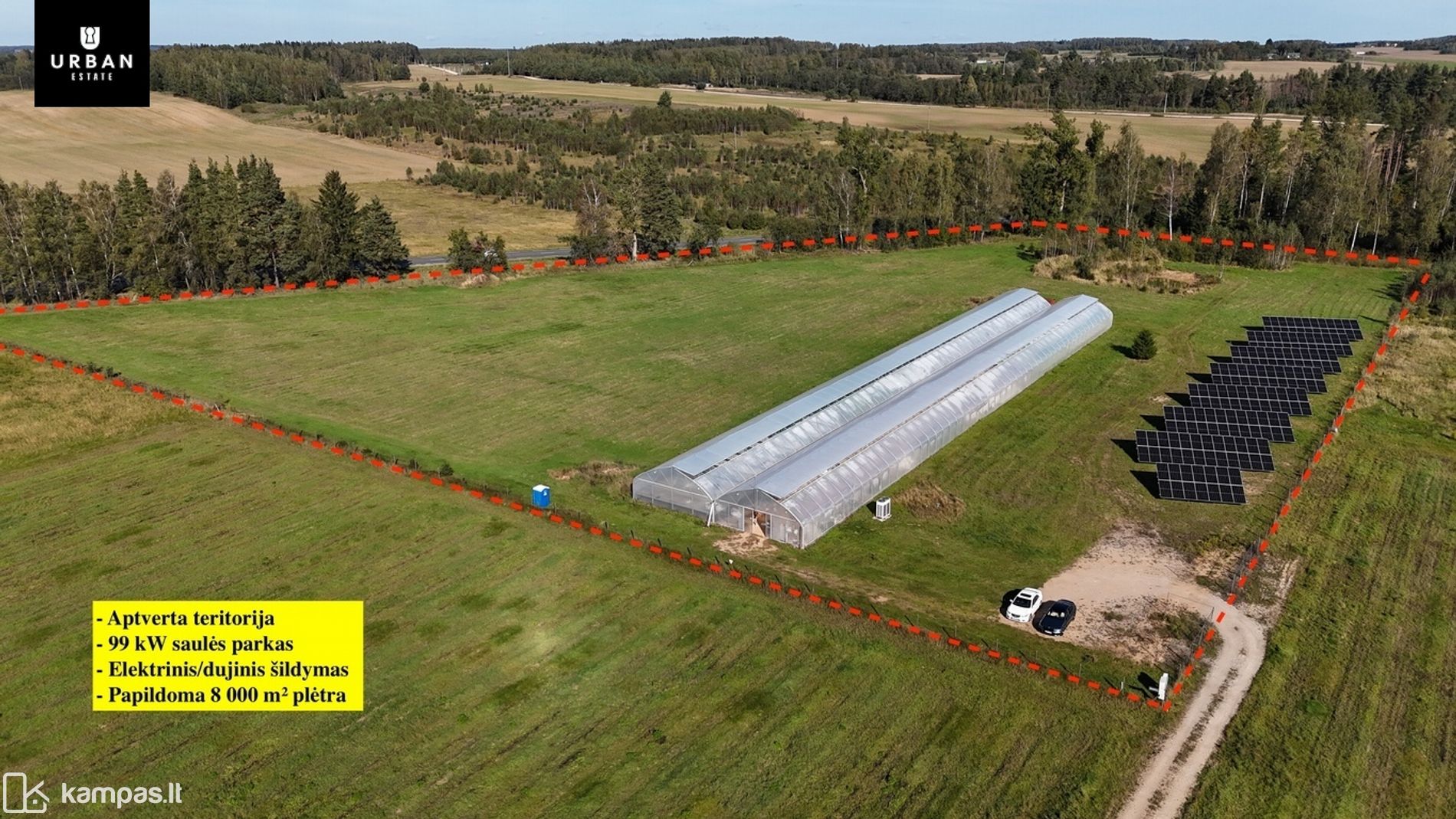 - Šiltnamis – 2 000 m² (naudojama ~1 300 m², galima greitai išplėsti iki 1 800 m² be didelių investicijų)