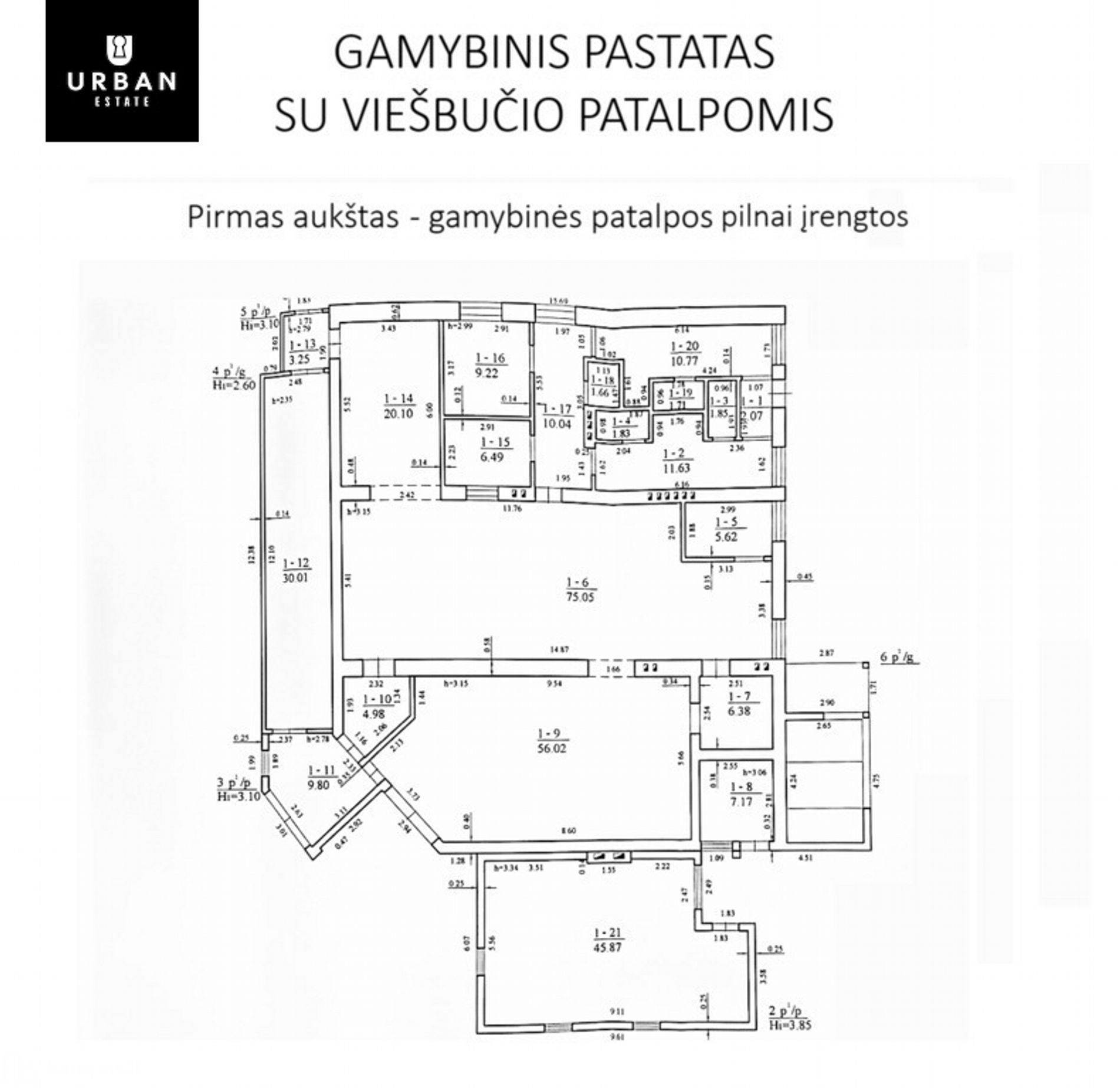 • Gamybos pastatas su viešbučio patalpomis trijų aukštų, iš kurių antras ir trečias dalinės apdailos, viešbučio paskirties. Pirmame aukšte įrengtos gamybinės patalpos su šaldymo patalpa.