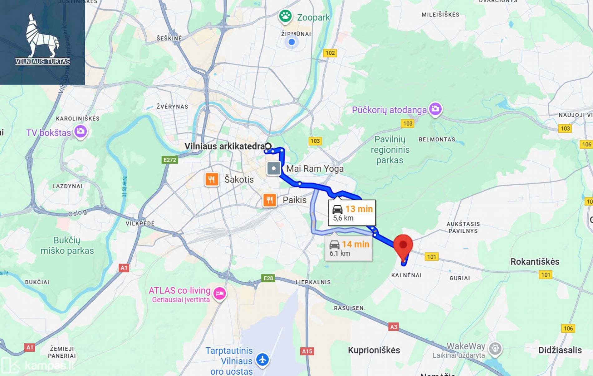 Vos kelios minutės automobiliu iki pagrindinių miesto arterijų ir tik ~5 km iki Vilniaus centro.