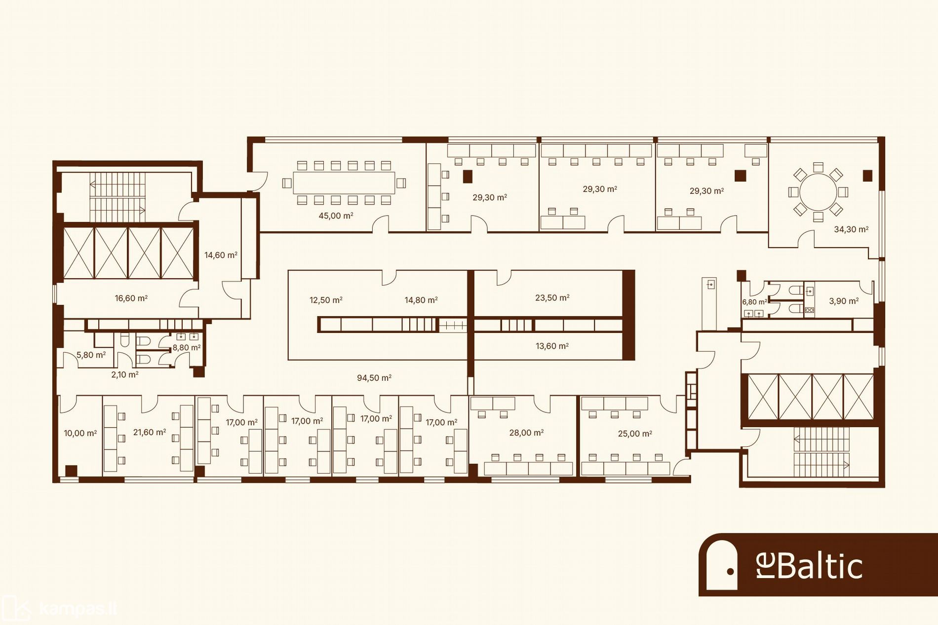 1) Erdvios 582 kv.m biuro patalpos per visą 10 aukštą - kaina 2.442 mln. Eur. Itin aukštos klasės įrengimas. Medžio lukšto sienų apdaila. Lenkto stiklo pertvara pagrindiniame 18+ vietų posėdžių ir susitikimų kambaryje. Vaizdai į miestą pro visus langus. Du akvariumai. Turi du įėjimus,- per rytinę ir vakarinę verslo centro laiptines. Galima pirkti dalį patalpų.