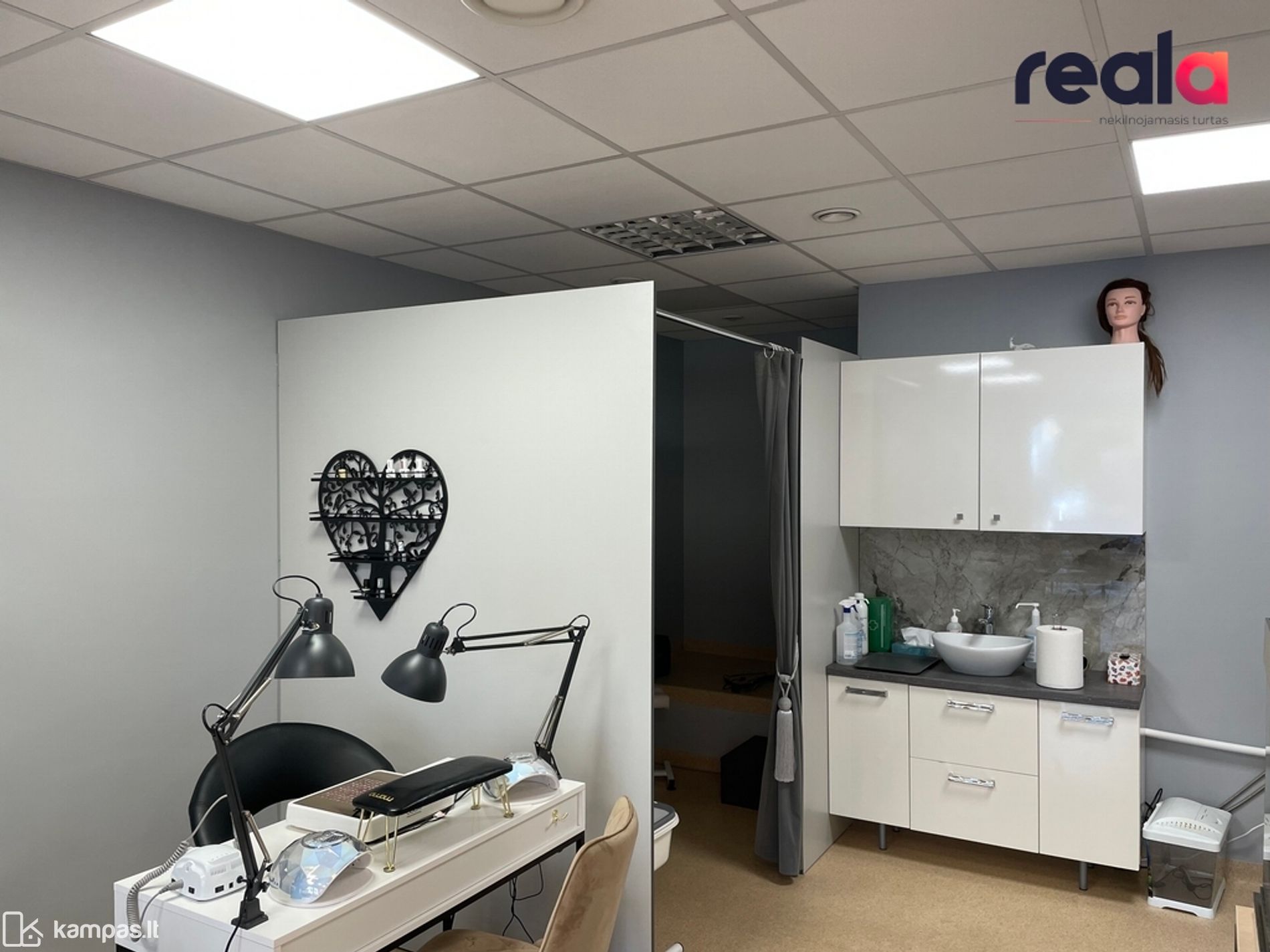 Parduodamos erdvios ir patogiai įrengtos komercinės patalpos, puikiai tinkančios tiek administracinei, tiek paslaugų veiklai. Šiuo metu patalpose yra įsikūręs grožio salonas.
