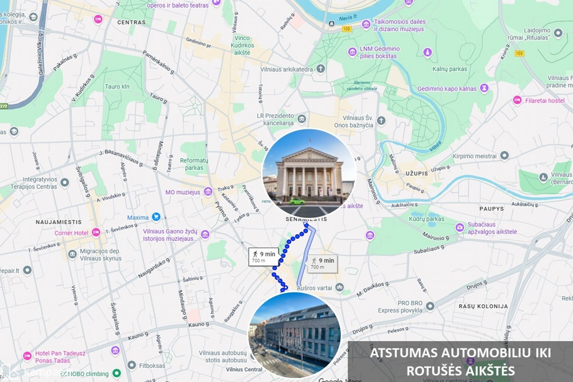 Atstumas iki Rotušės aikštės - 700 m. pėsčiomis.
