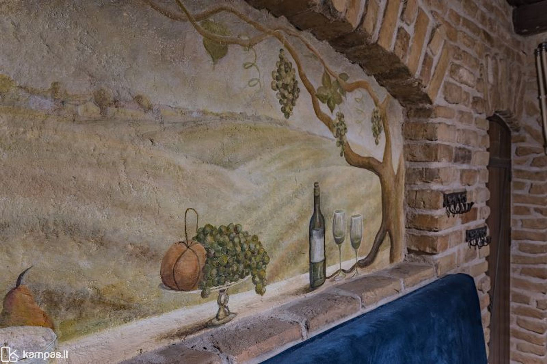 Unikaliose ir autentiškose rūsio patalpose - restorano salė, sienos dekoruotos freskomis.